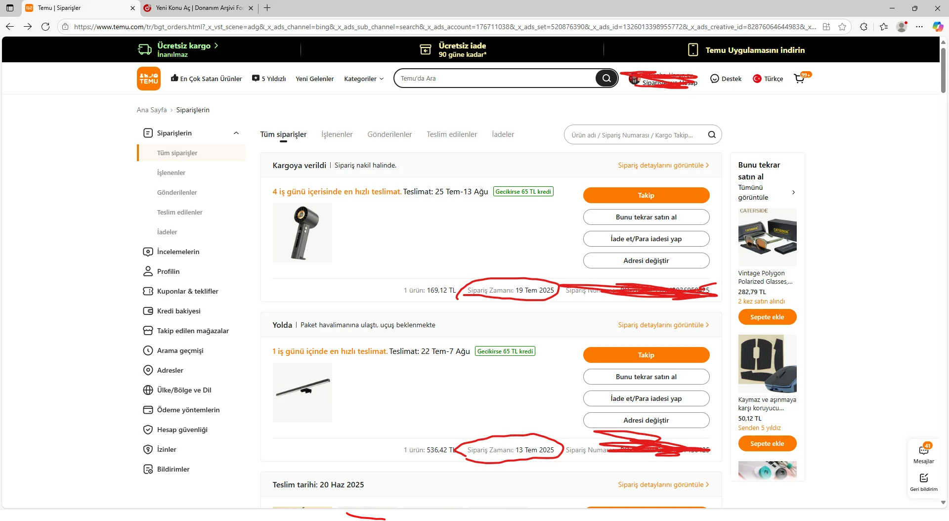 Temu kargom hakkında yardım