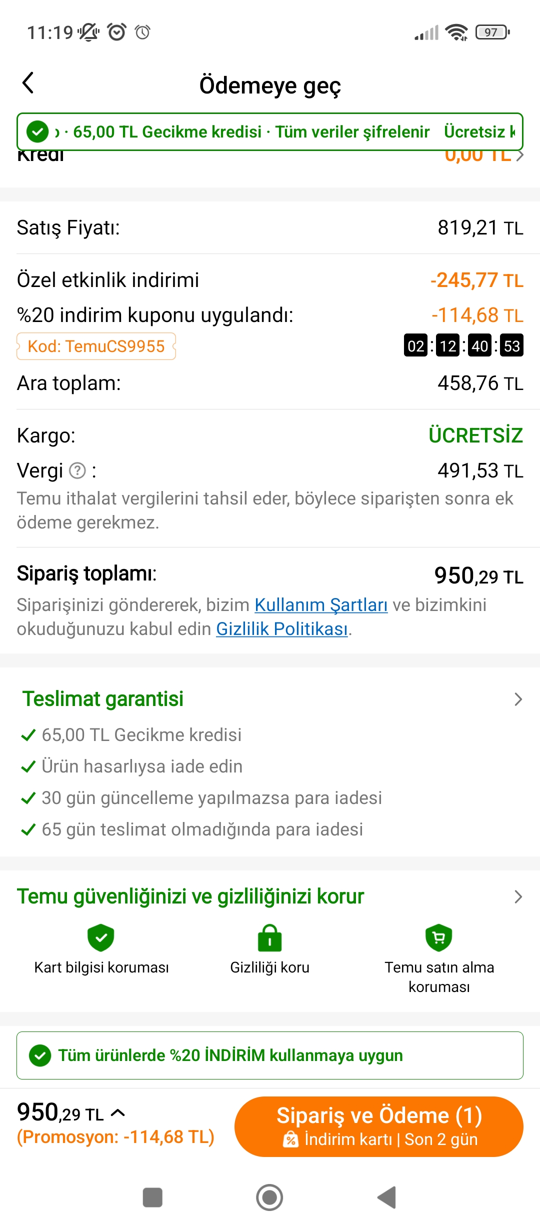 Pembeye indirim verdi ya ikisini de sepette tutuyordum.gayet güzel gözün kapalı bu fiyata alabilirsin pembe olmasın dersen 1050tl siyahı var bilgine