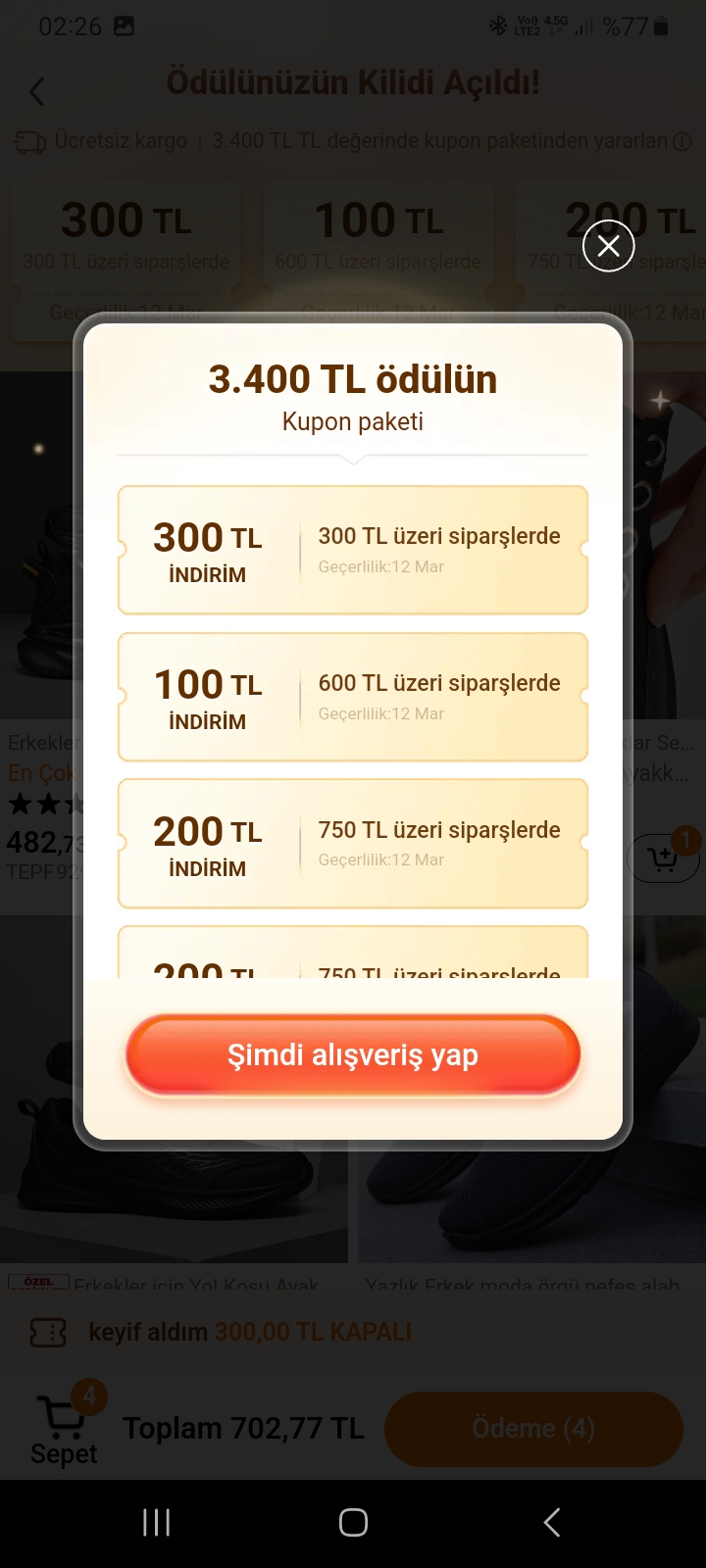 Temu nun kampanya diye sunduğu kupon olayıni Şimdi 1050 tl net vergi dahil 1650 tl harcama yaparak hak kazandim.