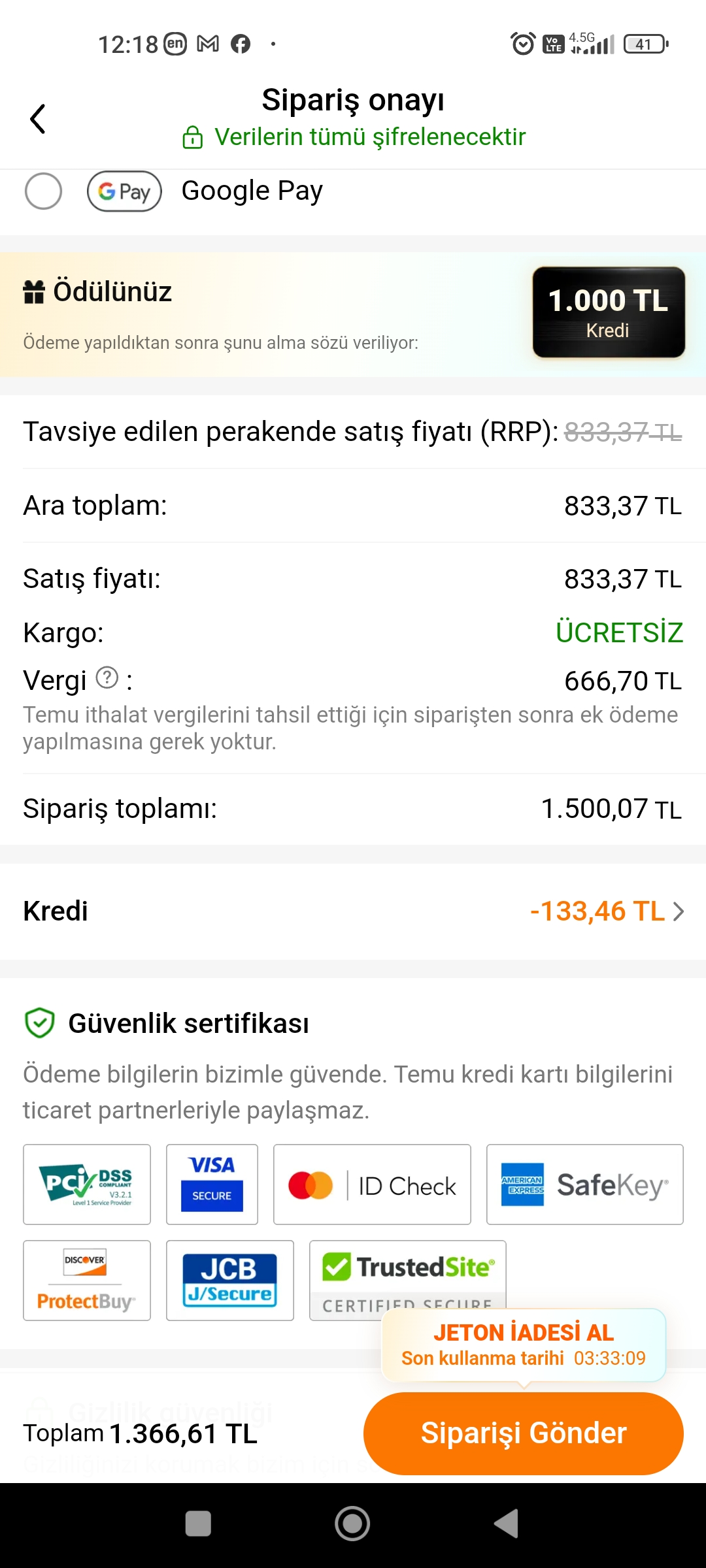 Ödülden kasıtları muhtemelen verecekleri jeton, kafa karışıklığı için de 1000 lira oraya koymuşlardır. Ödemeden sonra jetonu direkt veriyor ama 1000 lirayı geçmedikçe gelen %4 jeton 1000 lira kredi için gereken jeton miktarını karşılamıyor.Alıntıyı görüntüle