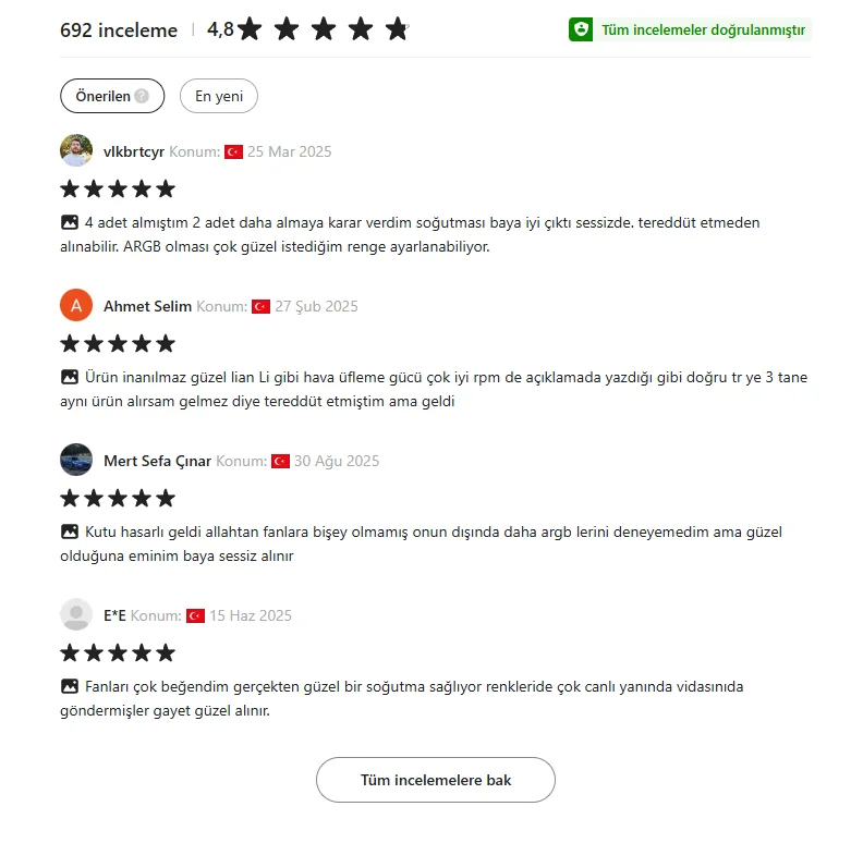 Aynıları var da temuda kredi iade, özel indirim vs olayı çok uyguna getiriyo ben tanesini 170tlye almıştımŞunun reverse olanından var bende, fiyatına göre gayet iyi. Ayrıca bu fanlar Türkiye'de var zaten. Rampage'de düz versiyonu, Dragos'ta reverse versiyonu Temu'dan daha ucuza geliyor.