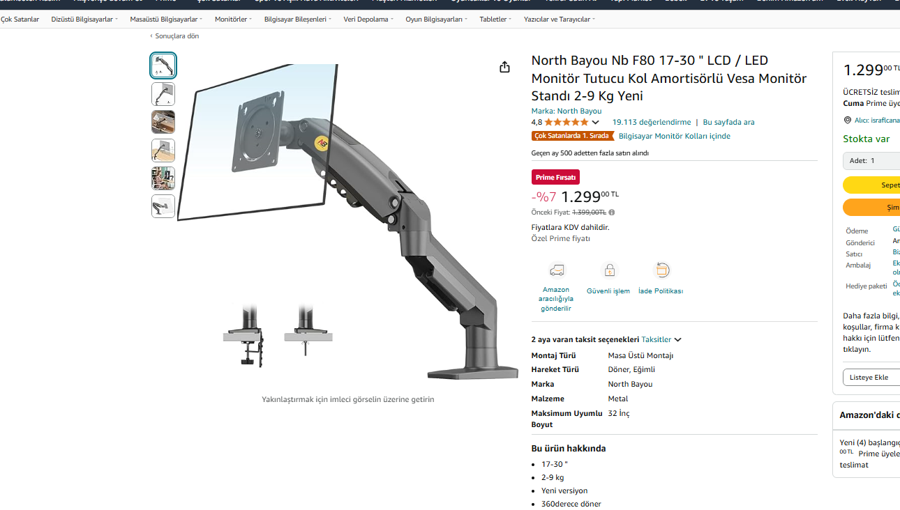 1k'dan kaçarken monitörü yerde bulma sonra bilmediğin bi markatemuda yle hocam amazodna 1300 trednyolda 1200 ama tek kolu temu 2 kol
