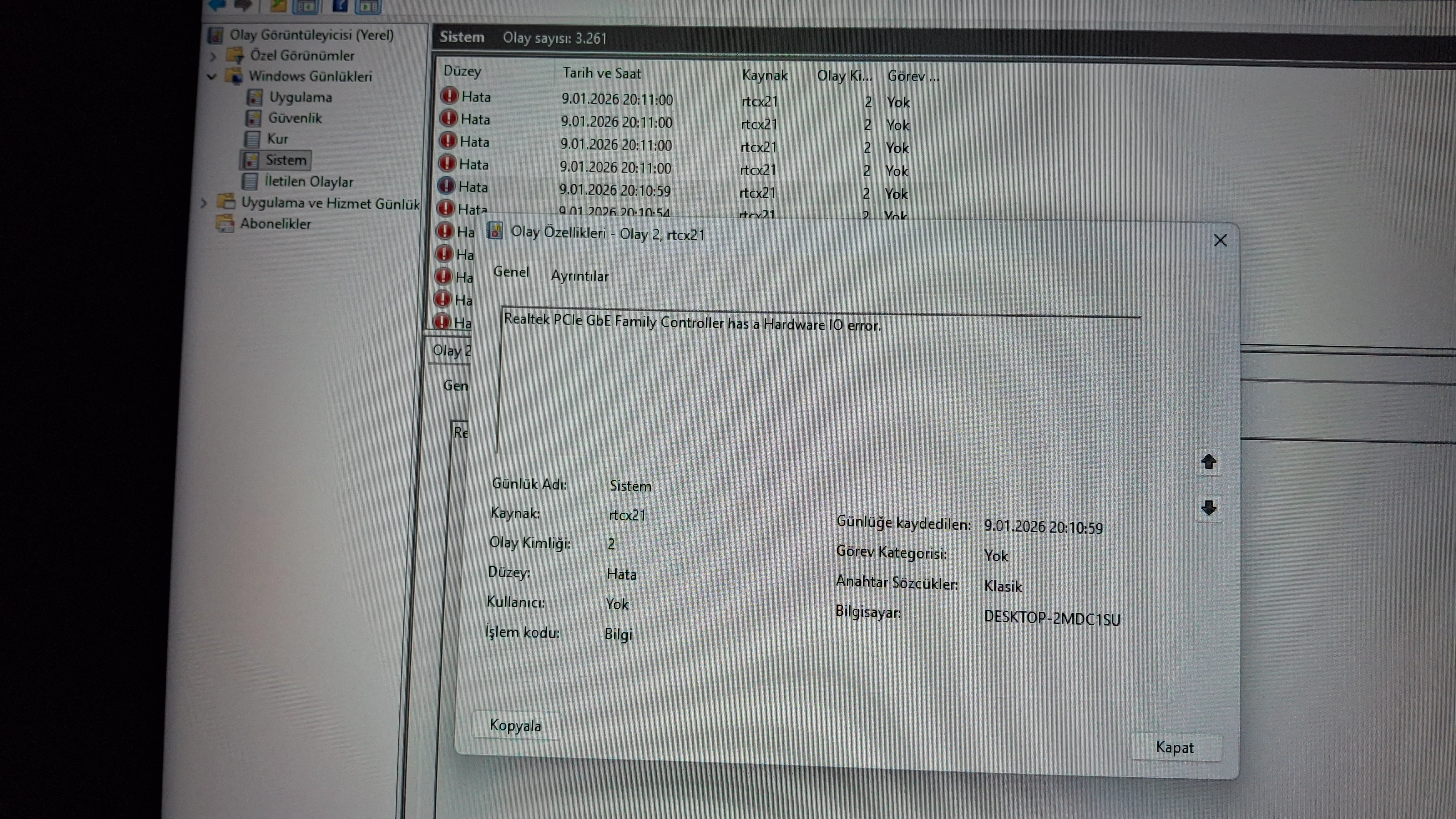 Merhaba daha yeni 0 sistem aldim 5060+5 7500 F li gecen gun oyunlarda takilmalar oldugunu soyleyip sistemi geri gonderdim bana tum donanimi test ettiklerimi bios chipset ekran karti guncellemelerini yapip gonderdiler sorum hala devam ediyor ve dun olay goruntuleyicisinde hatayi buldum gibi sizce sorunun kaynağı nedir ve nasıl çözülebilir lütfen yardım edermisiniz
