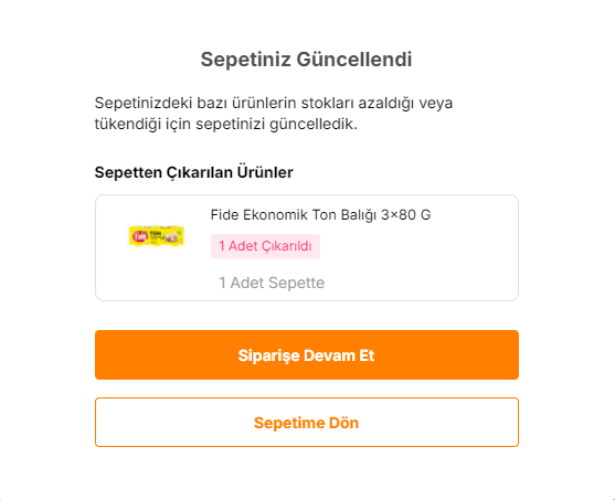 Stok bitmiştir 1 saat oldu olmadı aldım ben max 6 adete izin veriyodu. 6 tane bundan 6 tane kalite ton balığı aldım. Ayrıca bidmde 72 küsürden satıldığı zamanlar oldu ama o her zaman için mi öyle (diğer arkadaşlar tartışmış ondan sormak istedim)Birçoğunu sepete 2 adet ekleyince ödeme adımında 1 adete düşürüyor stok yok diyor. Zaten fiyatlar yukarı çekilmiş.
