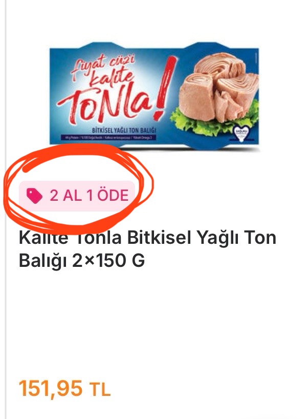 Bende bunu diyom zaten hepsi aynısını yapıyor sadece migros direkt kampanya demiş fdskfjsajfaDevamlı Migrosdan ton balığı alıyorum, fiyatları 2'ye katlanmış. eski fiyatına sahip 1 tane ürün yok. Eskiden 2 al 1 ödede normal fiyatlardan verirdi. bu fiyatlar yalan.