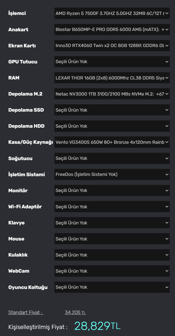 Inno güvenilir ve soğutması iyi olan bir marka. Vento da iyi ve yaygın bir marka gayet güvenilir. Ama bu sistem daha f/p bence. 30K bütçeniz olduğu için hemen aklıma gelmemişti o yüzden pardon. +1100 tl ile 700w psu seçip ( şart değil, normalde +627 TL olan deepcool seçilir ama siz ileride sistemi yükseltirsiniz diye 700w seçtirdim ) +1300 tl ile 1 tb ssd seçip alabilirsiniz.