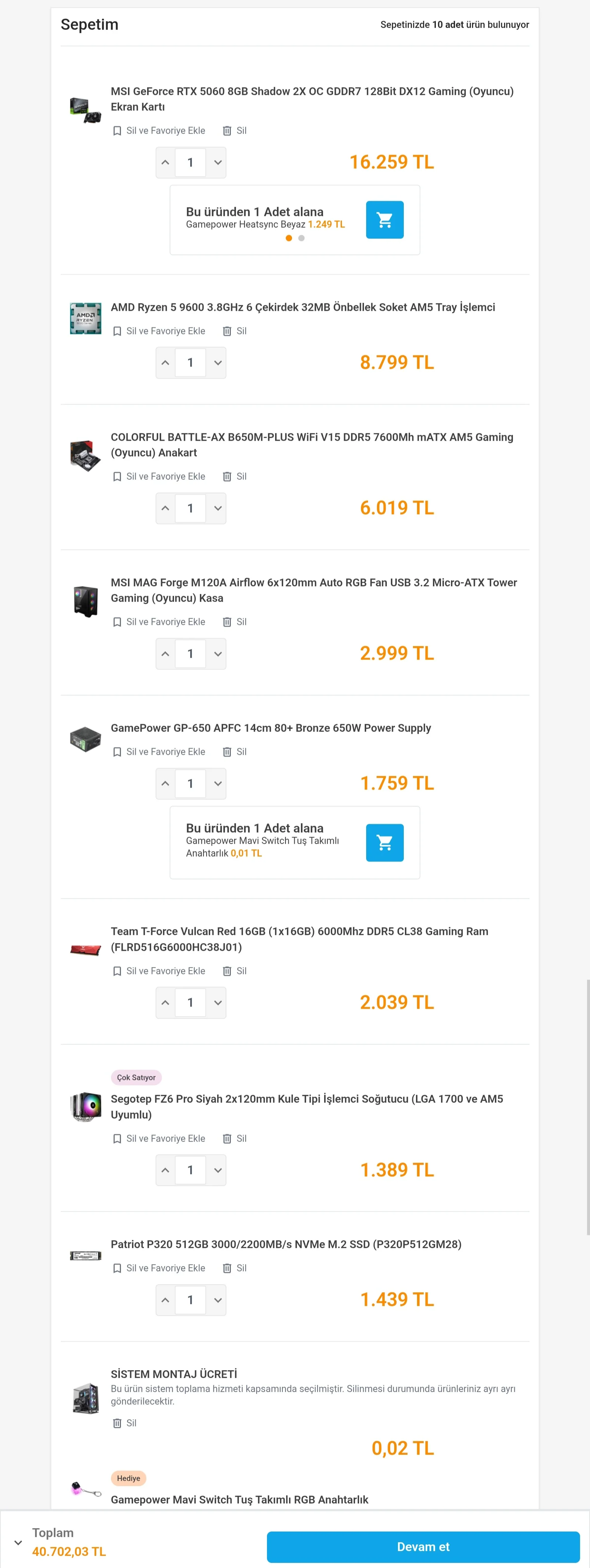 Merhabalar ilk kez pc toplayacağım fakat hangi kombinasyonların fiyatı sabit tutarak daha muktediri elde edilir bilemiyorum, fakat kendim nispeten iyi olduğunu düşündüğüm bir sistem hazırladım ve bu sistem ile ilgili neler yapabilirim daha iyileştirme anlamında ,Teşekkür ederim..