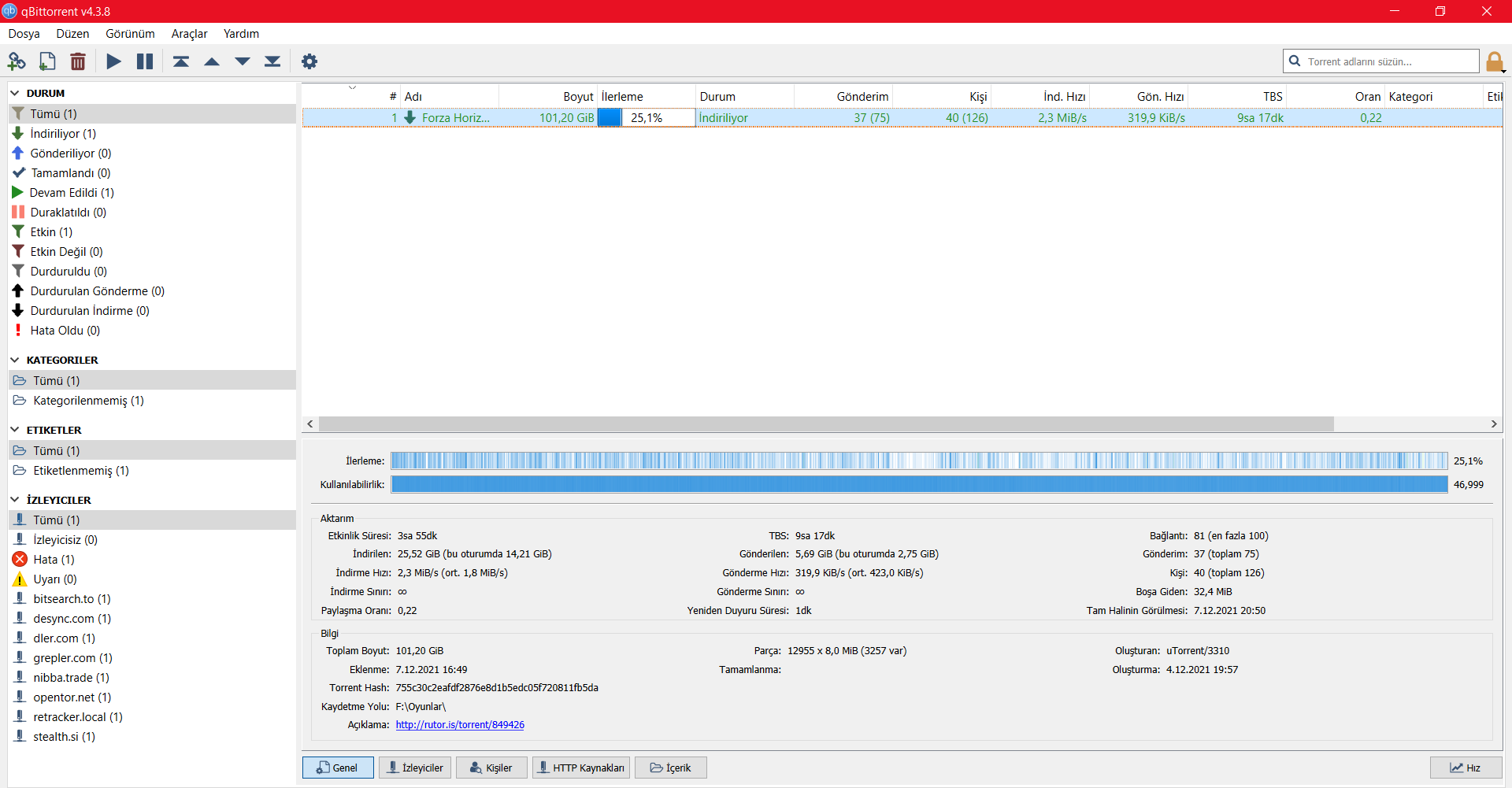 Sorun torrentte değil zaten başka programdan da denedim utorrentten memnunum da düzelmedi hala sorunSorunun nasıl çözülür bilmiyorum ama neden uTorrent kulanmıyorsun ki? qBitTorrent öneririm neredeyse hiçbir farkları yok ara yüz falan çok benzer ve qBitTorrent daha hızlı indiriyor şöyle söyliyeyim, Forza Horizon 5 indirirken qBit 2 mb/s indiriyor u ise 500kb/ falan indiriyor çok daha yavaş indiriyor