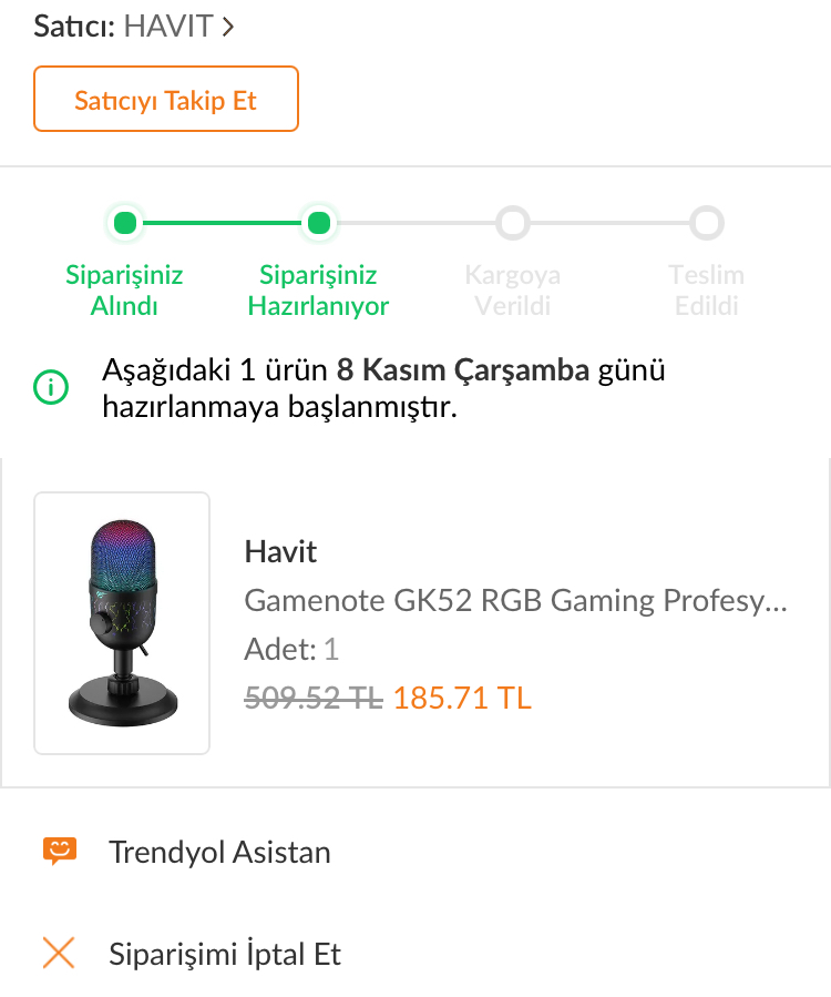 Kardeşim niye sildin aldığını, ne almıştın ucuzmuş kalitesi nasılAllah hazırlanıyora geçti dün geçmeden iptal olmuştu hadi hayırlısı