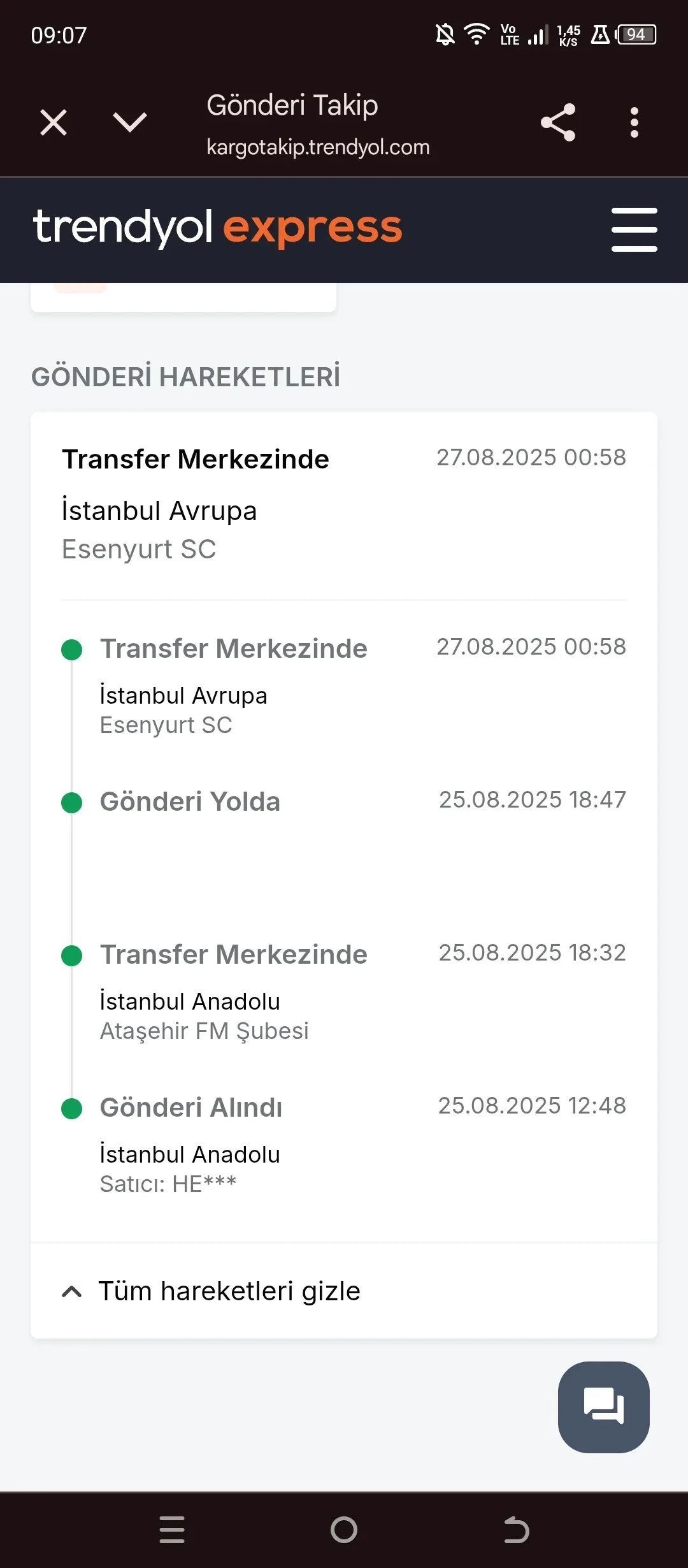 Arkadaşlar ben bursadayım normalde istanbuldan 1 günde gelmesi gereken kargo 2 gündür gelmedi ve işin garip tarafı ataşehirde olan kargo nasıl Esenyurt'ta gidebiliyor müşteri hizmetlerine soruyorum bot gibi aynı cevabı verip duruyolar ne yaapabilirim? trendyol expressi tercih etmeyin pttden beterler.