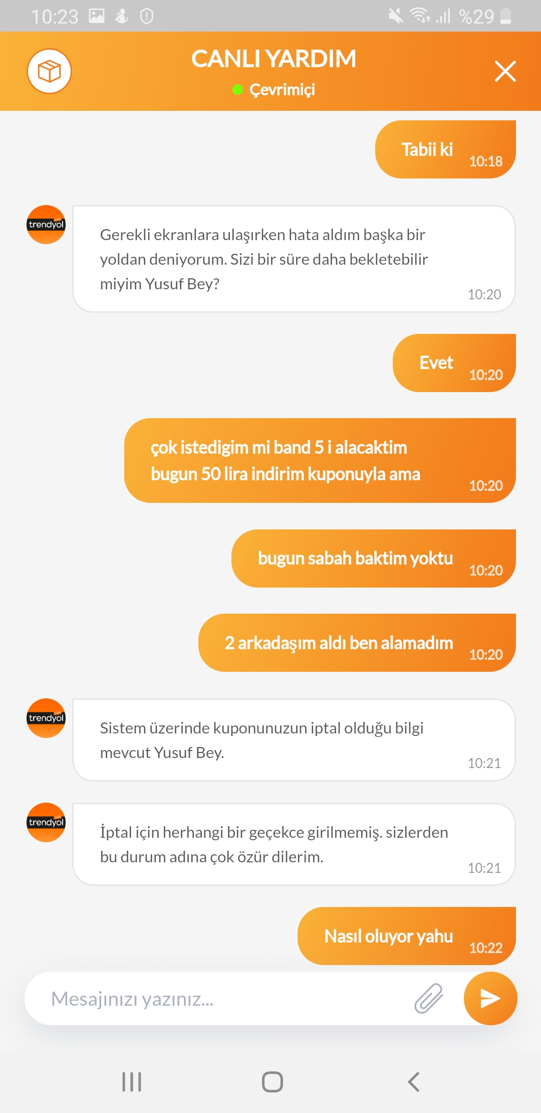 Kullanacağım gün kuponu siliyorlar?