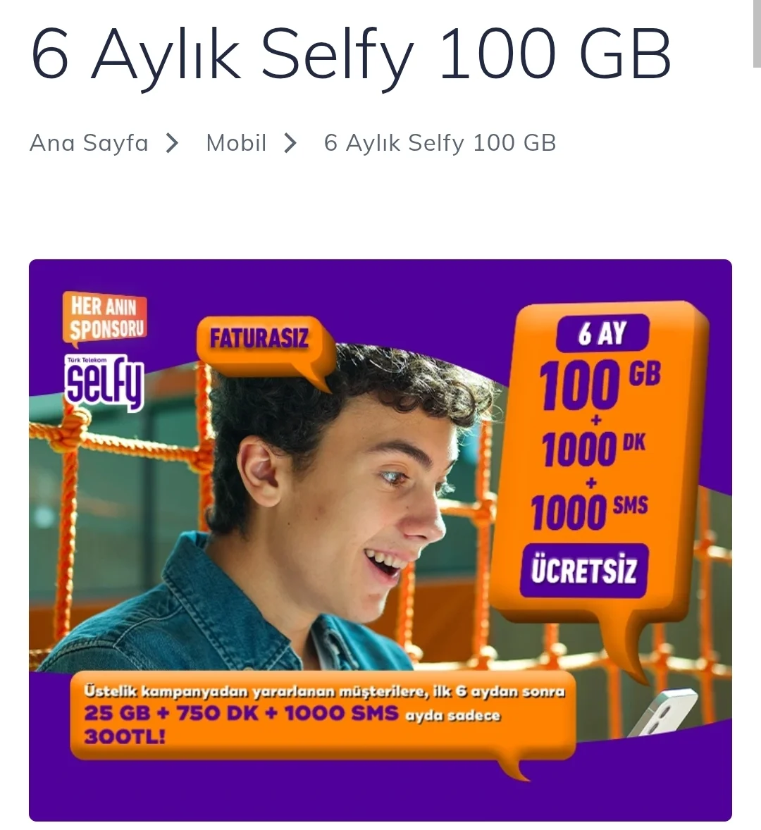 6 aylik selfy 100gb yazin turk telekom sitesinden kayit olunca 5dk sonra ariyolar onay aliyorlar 2 güne kalmaz gelecek hattiniz dediler