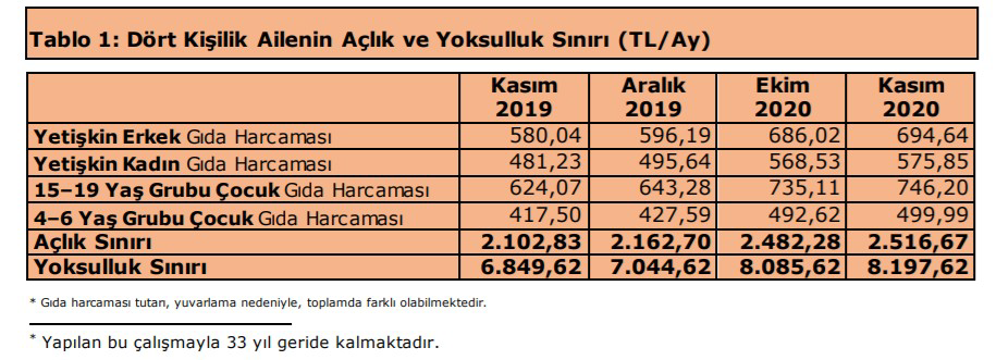 Pandemi döneminde ise işler değişti , Yoksulluk sınırı 11300 TL ve Açlık sınırı ise 3.300 TL