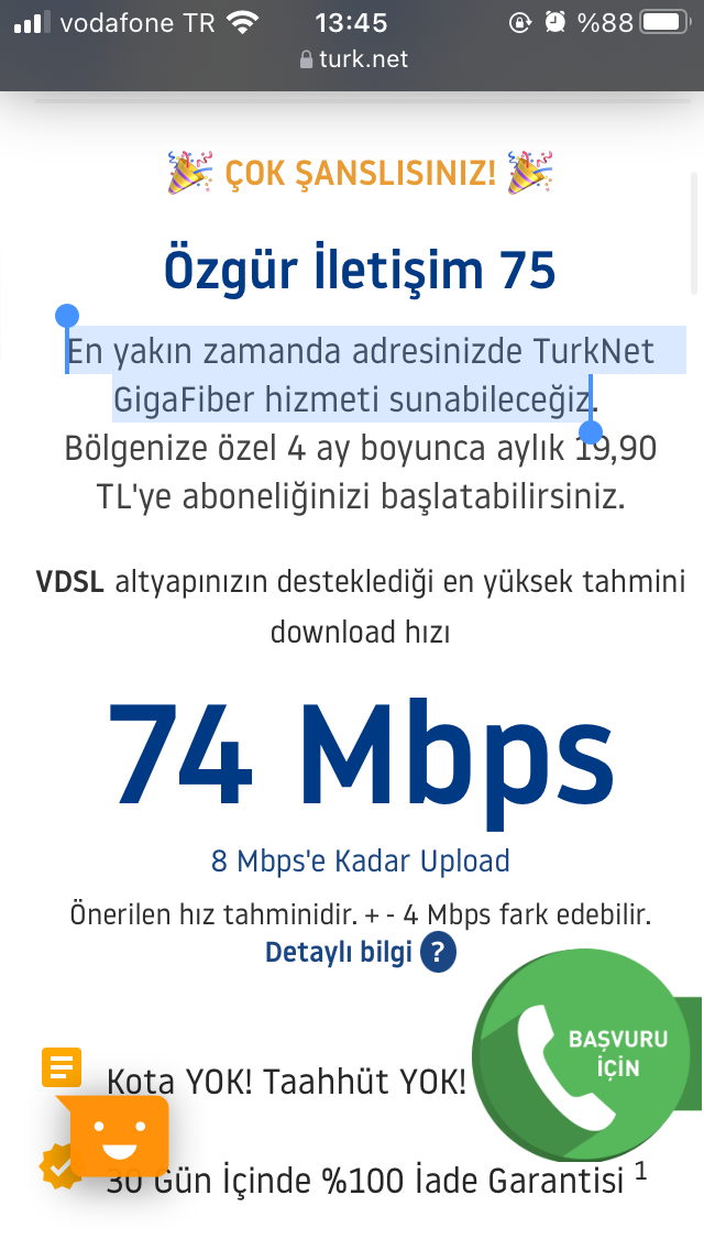 Çok şanslısınGeçen gün altyapı sorgulama yaptım ve En yakın zamanda adresinizde TurkNet GigaFiber hizmeti sunabileceğiz diye bir yazı vardı.Geliyorsa çalışma ne zaman başlar?