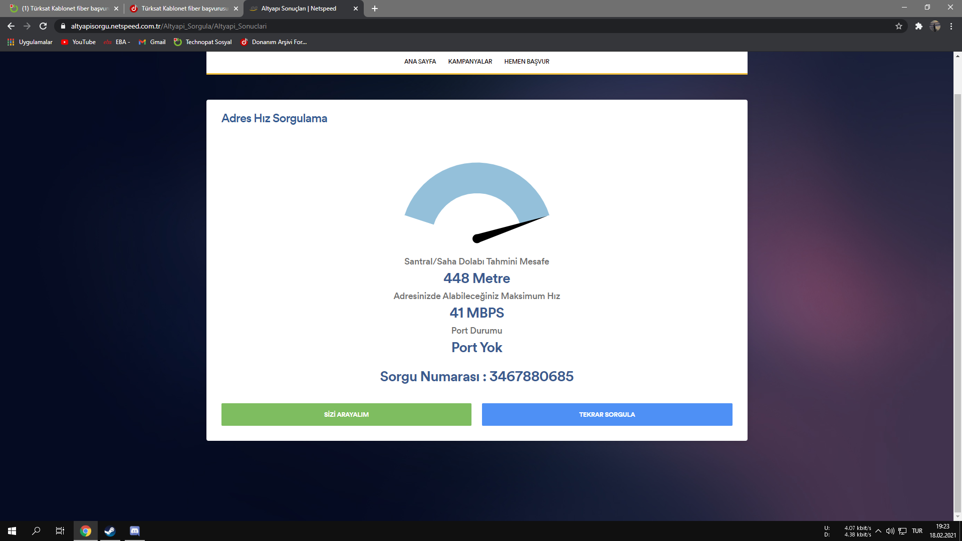 Netspeed'ten altyapı sorgulayıp atar mısın?