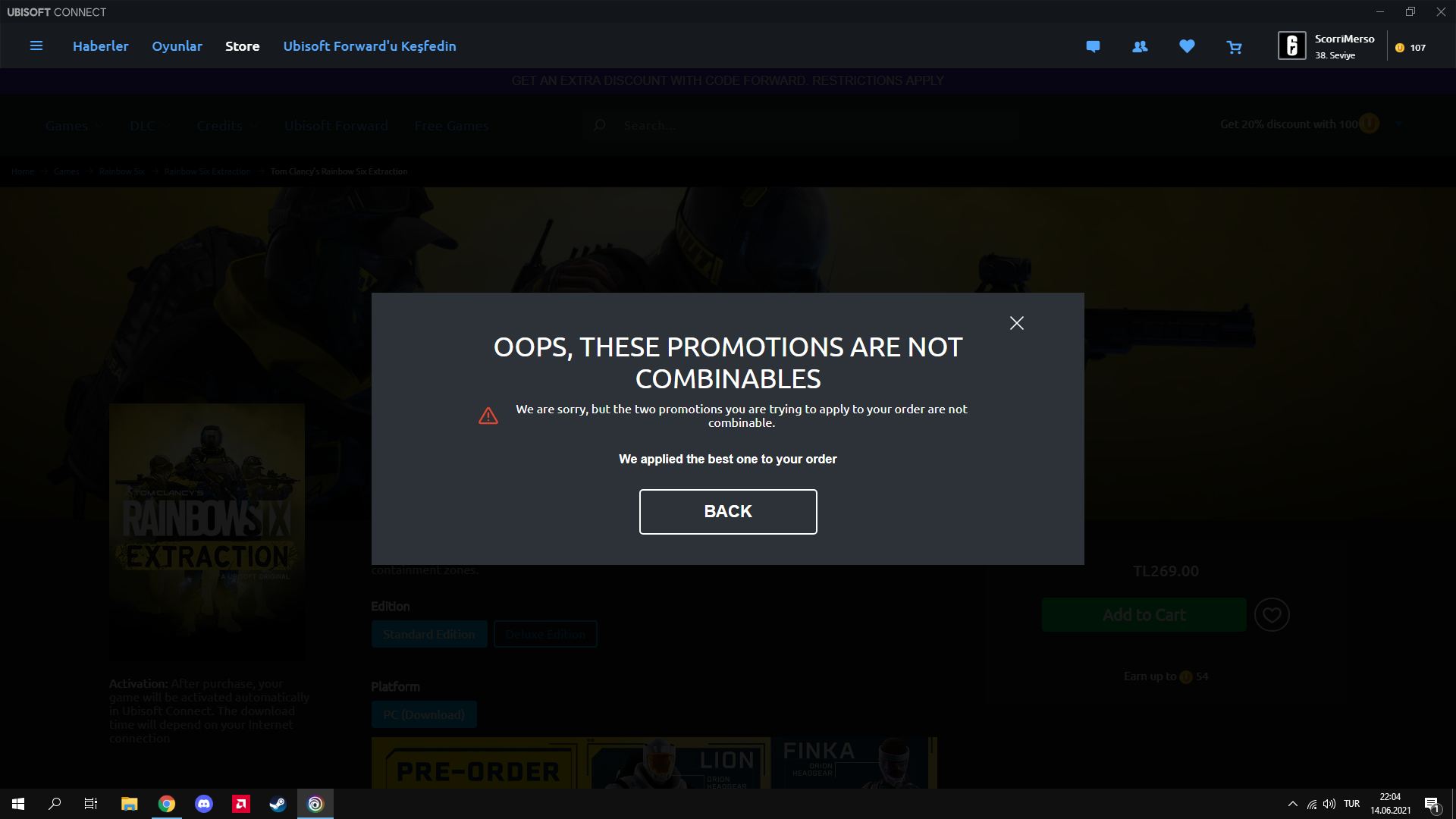 rainbow six extraction ön sipariş verecektim maalesef olmadı 100 uplay parasıyla %20 indirimli alacağım başka seçenek yokr6 credit falan alacaksan onlara indirim uygulanmıyor sadece oyun veya dlc alabilirsin.