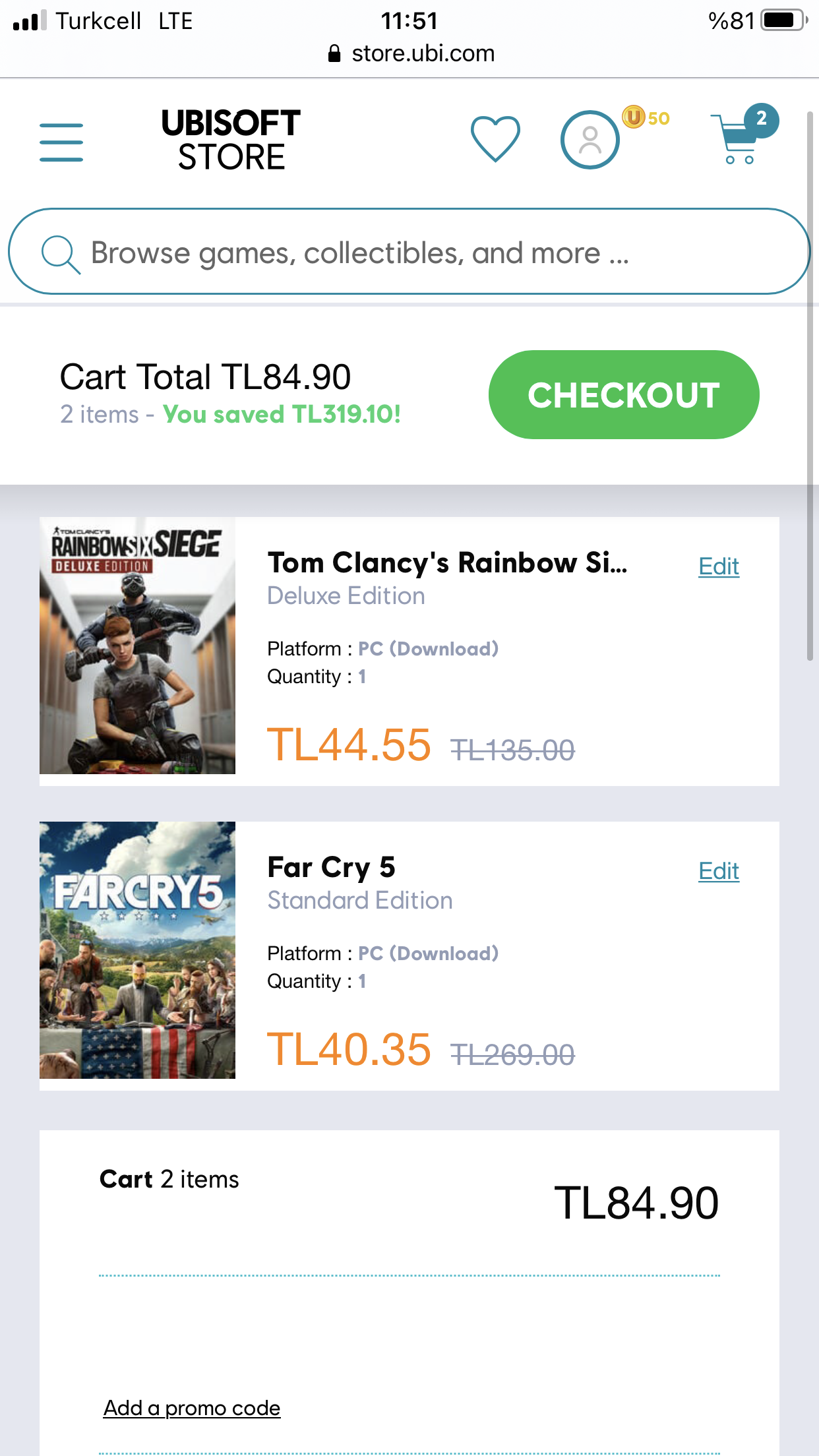 Hocam daha once burayi hic kullanmadim. Sepete ekledim bu sekilde. Alim islemini nasil yapacagim? Kod nereden alacagiz bilgilendirme yapabilir misinizFar Cry 5 ve rainbow deluxe 24 TL ye aldım