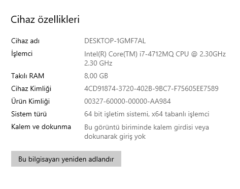sistem özellikleri: