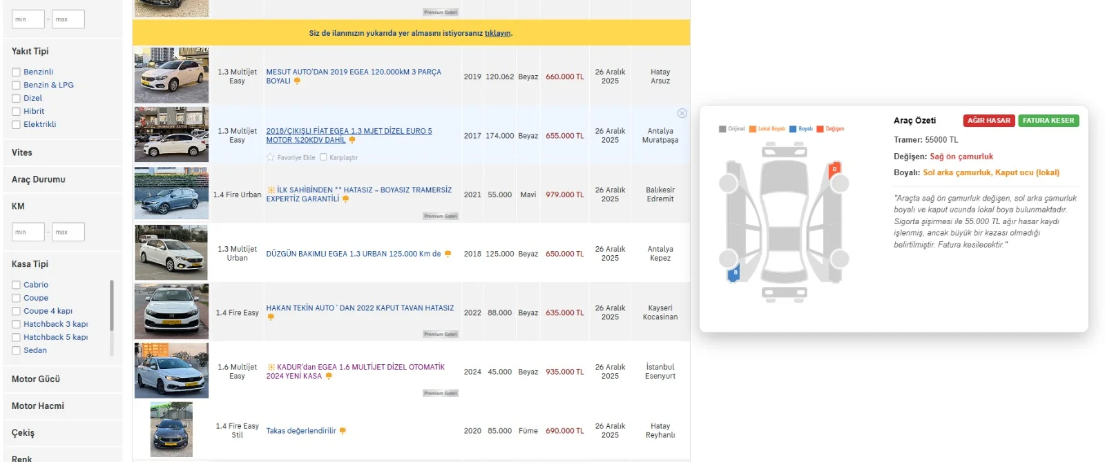- Net Tramer Bilgisi: Toplam hasar kaydını en üstte vurgular.