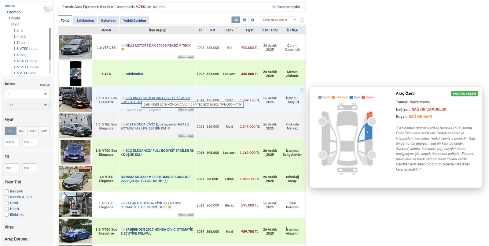 Eklentinin en can alıcı noktası arkasında çalışan AI (Yapay Zeka) desteği. Siz ilan listesinde mouse ile bir aracın üzerine geldiğinizde (hover), eklenti saniyeler içinde şunları yapar:
