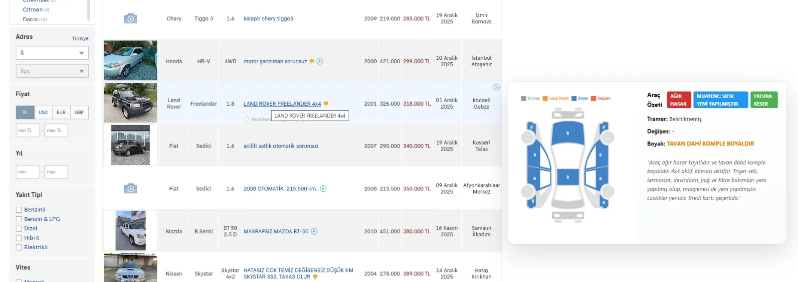 İkinci el araç bakarken her ilana tek tek tıklayıp, satıcıların yazdığı uzun ve karmaşık açıklamaları okumaktan yorulanlar için tamamen ücretsiz bir Chrome eklentisi geliştirdim.