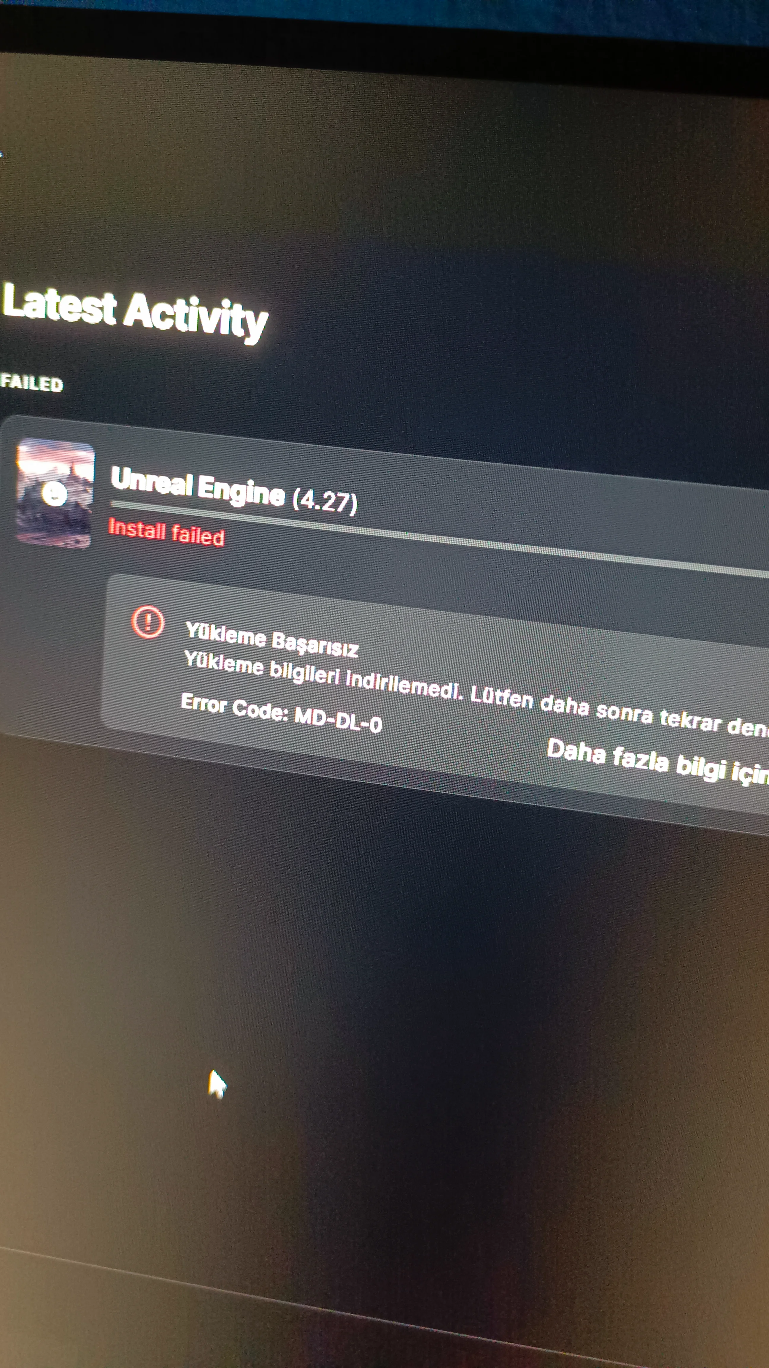 Epic Games launcher'ı açıyorum ve oyunu indiriyorum. Oyun ismi Dauntless ama böyle bir hatayla karşılaşıyorum. Telefonumun internetinden indirebiliyorum ama normal kullandığım internetten hep bu sorunu alıyorum. Ne yapmam lazım? Yardımlarınız için şimdiden teşekkürler. Çözdüm. Vpn ile halletim.