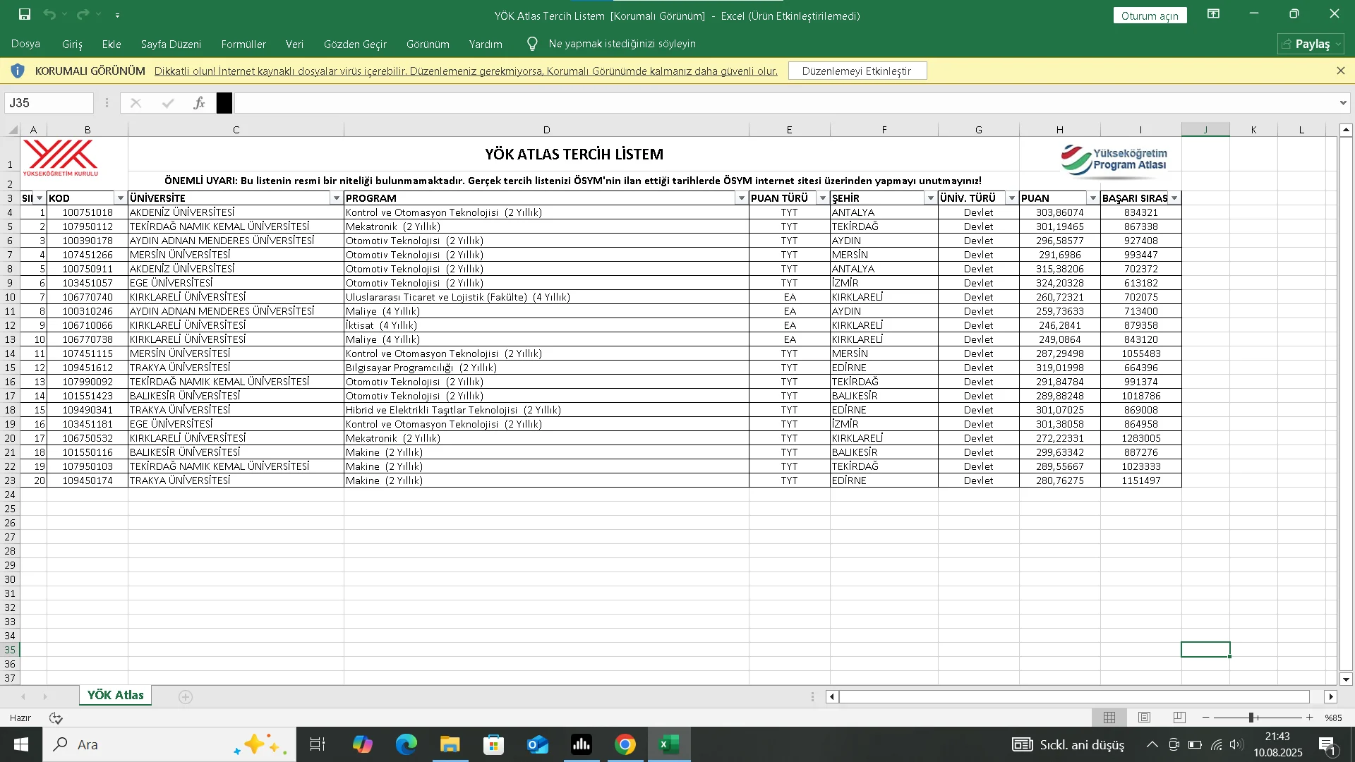öne lisansları koyup liste oluştur diyeceğimde muhtemelen onlar gelir. açıkçası can sıkıcı bir tercih listesi olacak