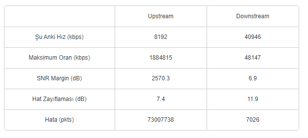 Galiba modeminde sorun var, o değerler mümkün değil ama :D