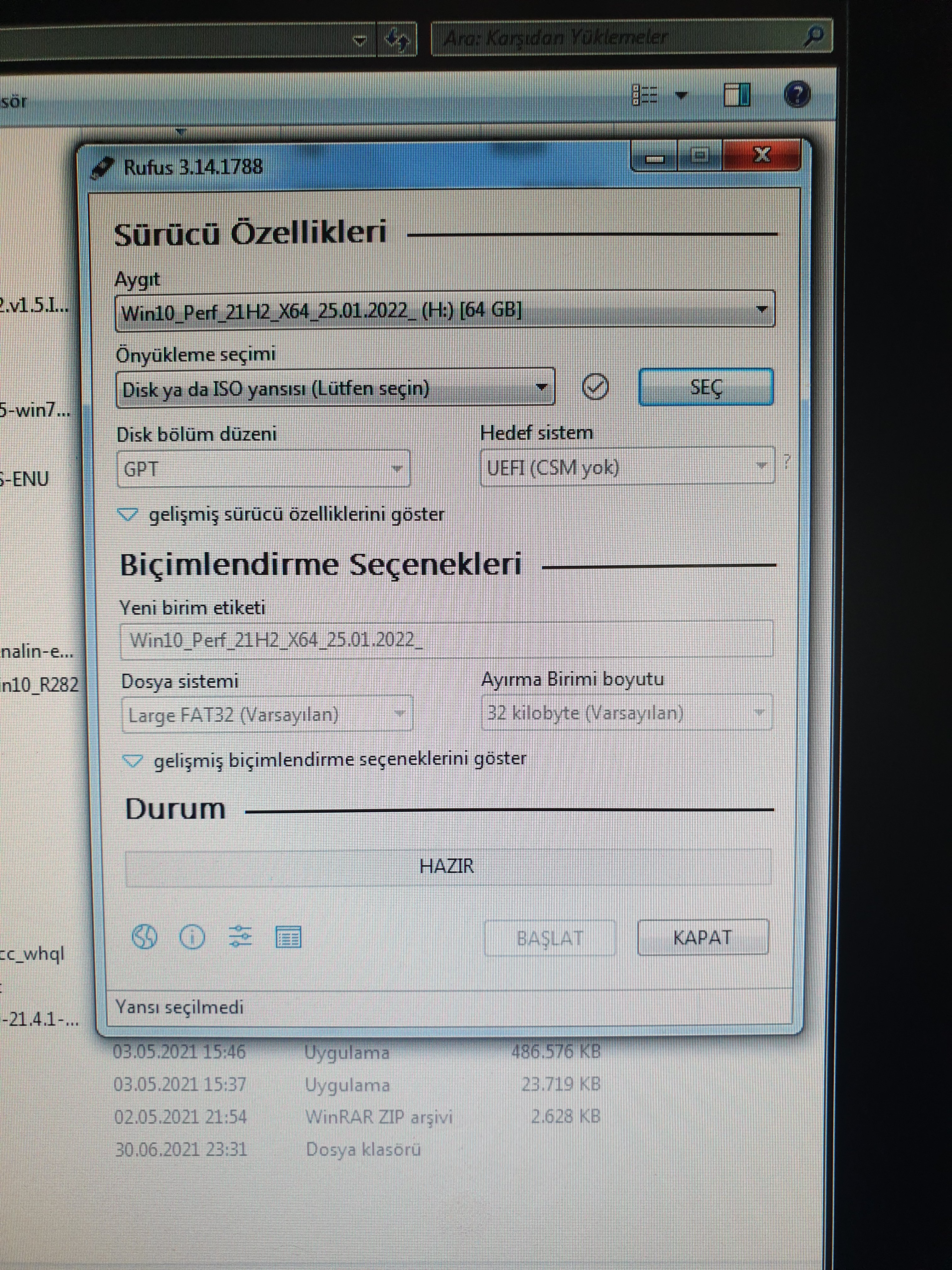 Usb uefi biçimde hazırlamışsın 2 çözümü var