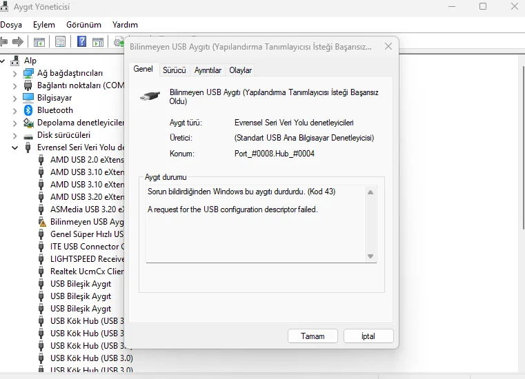 M Memoli12345 80+ Bronze Katılım 26 Haziran 2020 Mesajlar 1,600 Reaksiyon skoru 422 21 Eylül 2025 #1 bilgisayarı açtım mouse çalışmıyor mikrofon çalışmıyor aygıt yöneticisine girdim ve sonuç ne yapmam lzm? Usb 5G YAZAN yerlerin hiçbiri çalışmıyor Ekler usb aygıtı sorunu 2.webp 44.2 KB · Hit: 25 usb aygıtı sorunu.webp 40.6 KB · Hit: 25 IMG_5679.webp 1 MB · Hit: 22