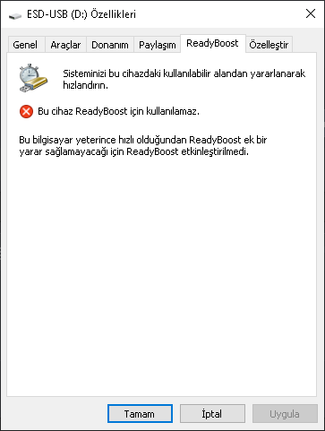 Öyle değil Windows'un verdiği ReadyBoost sayesinde Ram görevi görüyormuş.Ya öyle saçma şey mi oluyor. Bende de taşınabilir HDD var 2 tb o zaman onu ram yapiyim 2 tb lık. Yani birde hızı kaç mhz olcak. Birde ram görevi görse USB yi çıkardığın anda bilgisayar kapanır.