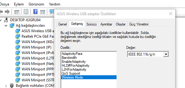 Asus'un wifi wirelessını kullanıyorum. Hız testleri çok düşük ne yapmam lazım? Aşağıda bırakacağım fotoda değiştirmem gereken ayar vs var mı?