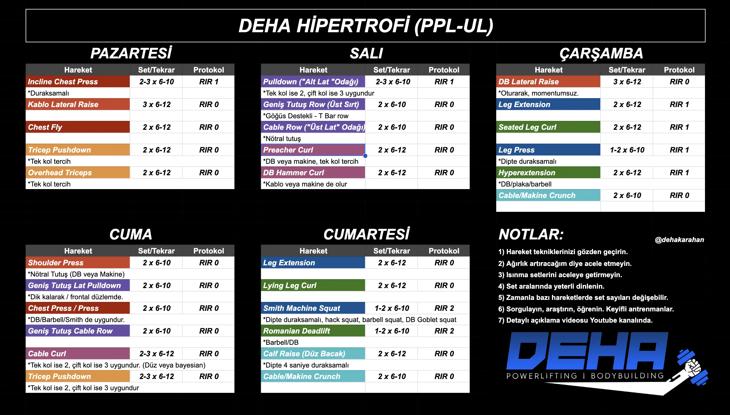 - Cable Crossover (üstten alta) → 2 set 12–15