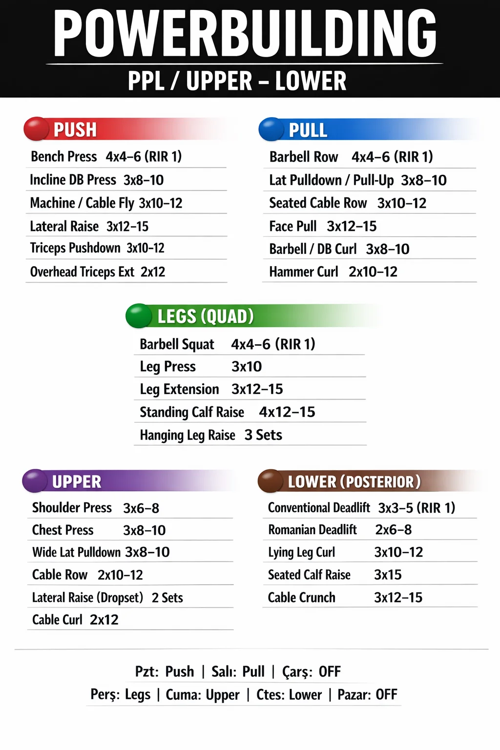 2. Gün (Orta + alt ağırlıklı)