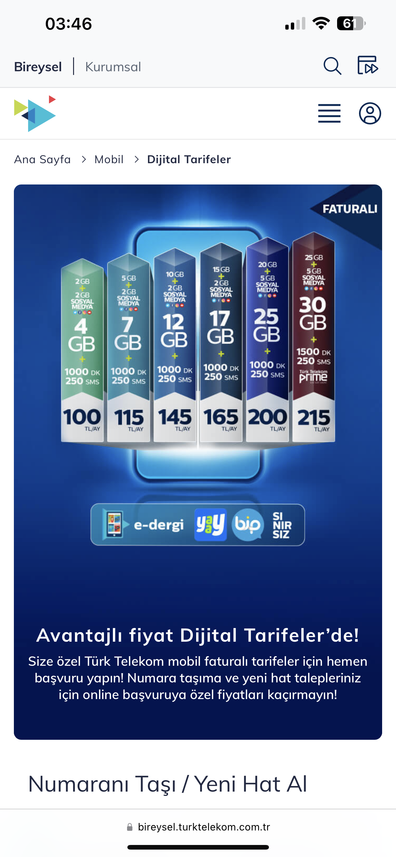 Aşırı üst paketlere bakmıyorsan Türk Telekom Faturasıza geç 3 aylık bir paket al keyfine bak. Sonrasında bunlardan çok daha ucuza faturalıya geçiş teklifleri geliyor birine geçersiniz. Şuan bende 8GB 90TL, 12GB 110TL teklifi var mesela.