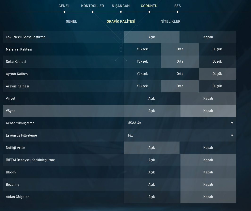 Merhaba 3060ti, 5600 sistemim 165hz 1ms monitörüm var en iyi grafik ayarları nasıl olmalı güzel gözükmesi önemli değil.