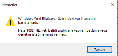 Hizmetlerden vgc etkinleştir diyecek olanlar için onuda denedim bu sefer de bu hatayı veriyo