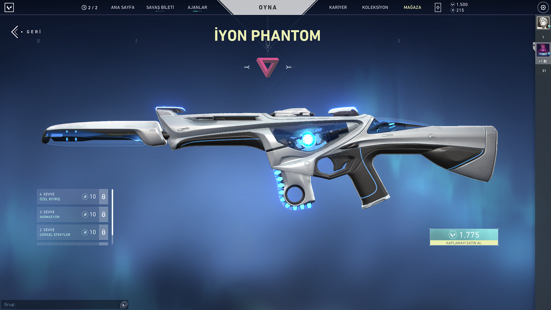 En başta güzel fakat bir süre sonra sıkıcı oluyor, renk paketleri yok diye de diğer skinlerden daha da sıkıcı oluyor. Phantom skini olarak Afet, Asil veya Anomali öneririm.