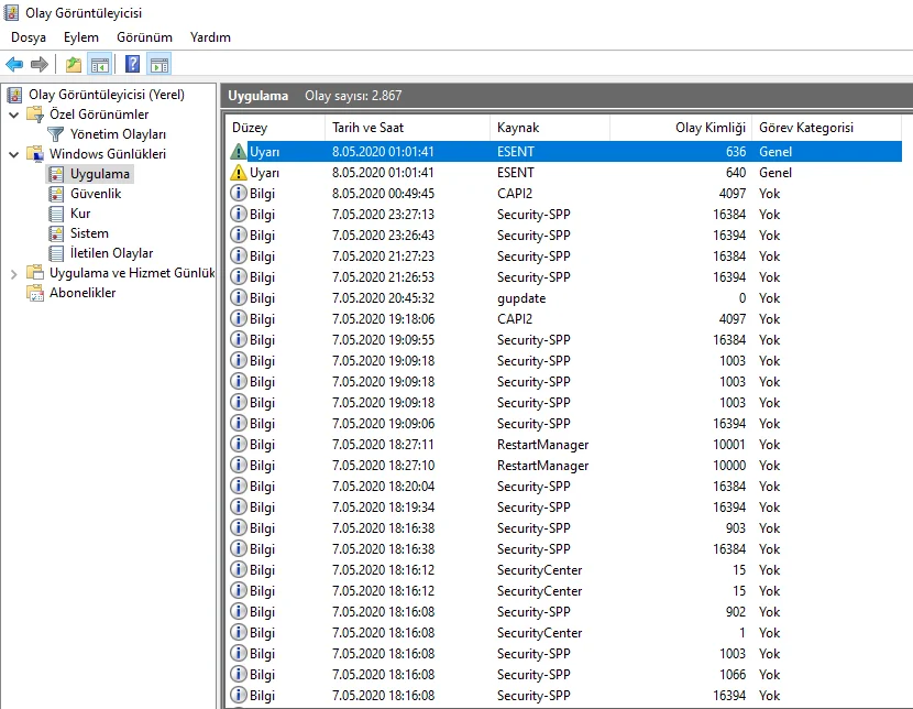 Program Ekle Kaldır'a girip bütün Visual Studioları tek tek açıp onarın. Ya da fotoğraftaki gibi Olay Görüntüleyicisine girip nelerin hata verdiğini kontrol edin.