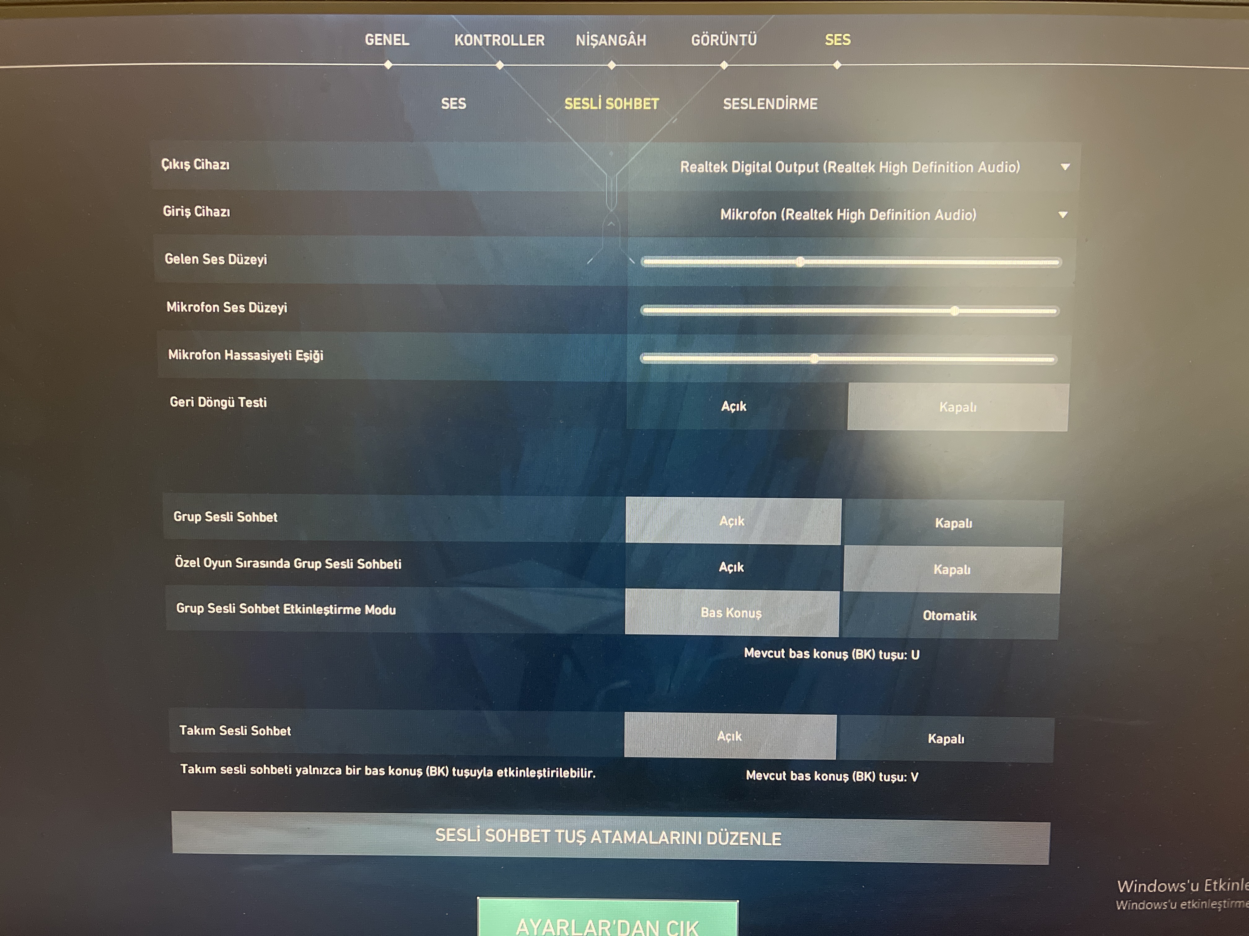 yaptım oyuna girip deneyim bakalım. dereceli girmeden deneme yeri yok sanırımmikrofon ayarlarından giriş cihazını default system device olaraksa mikrofonunu seç. Ve orada mikrofon ses düzeyi diye bir kaydırma çubuğu var. Onu en başa çekip tekrardan sona getir. Orada 3 tane çizgi olması lazım, hepsini girdiğinde öyle yap.