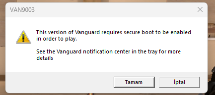 merhabalar windows11 geçtim valoranta girerken bu hatayı alıyorum ana kartım Biostar B650MP-E Pro yardımcı olursanız sevinirim secure boot açtığım halde yine aynı hatayı aldım