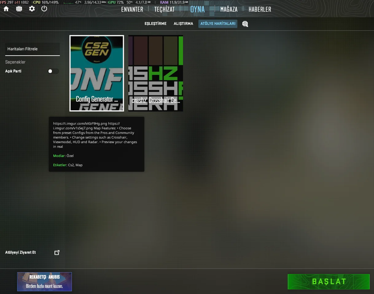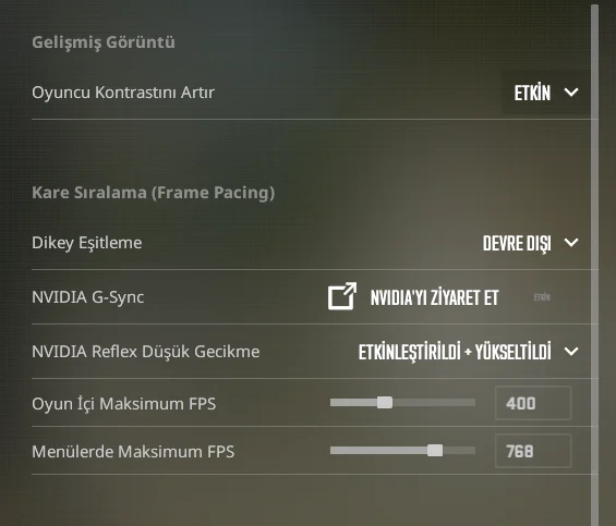 CS2 için şu ayarları kullanıyorum.