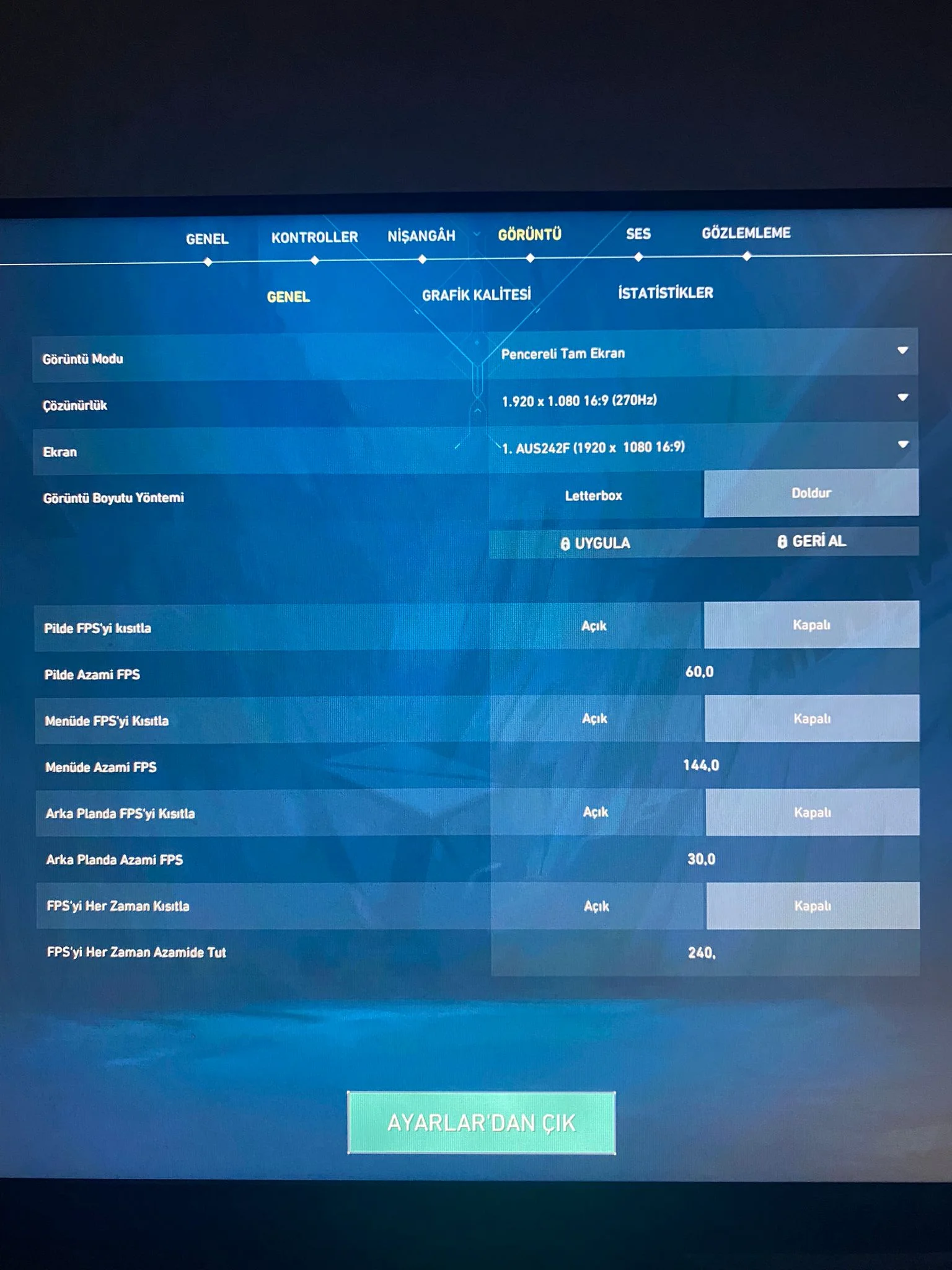 Sorun şu ki monitörüm 270 hz ve bu değerin altına fps düşünce paket kaybı oluyor buda oyuna drop girmesine sebep oluyor ve oyun anlık olarak donuyor.