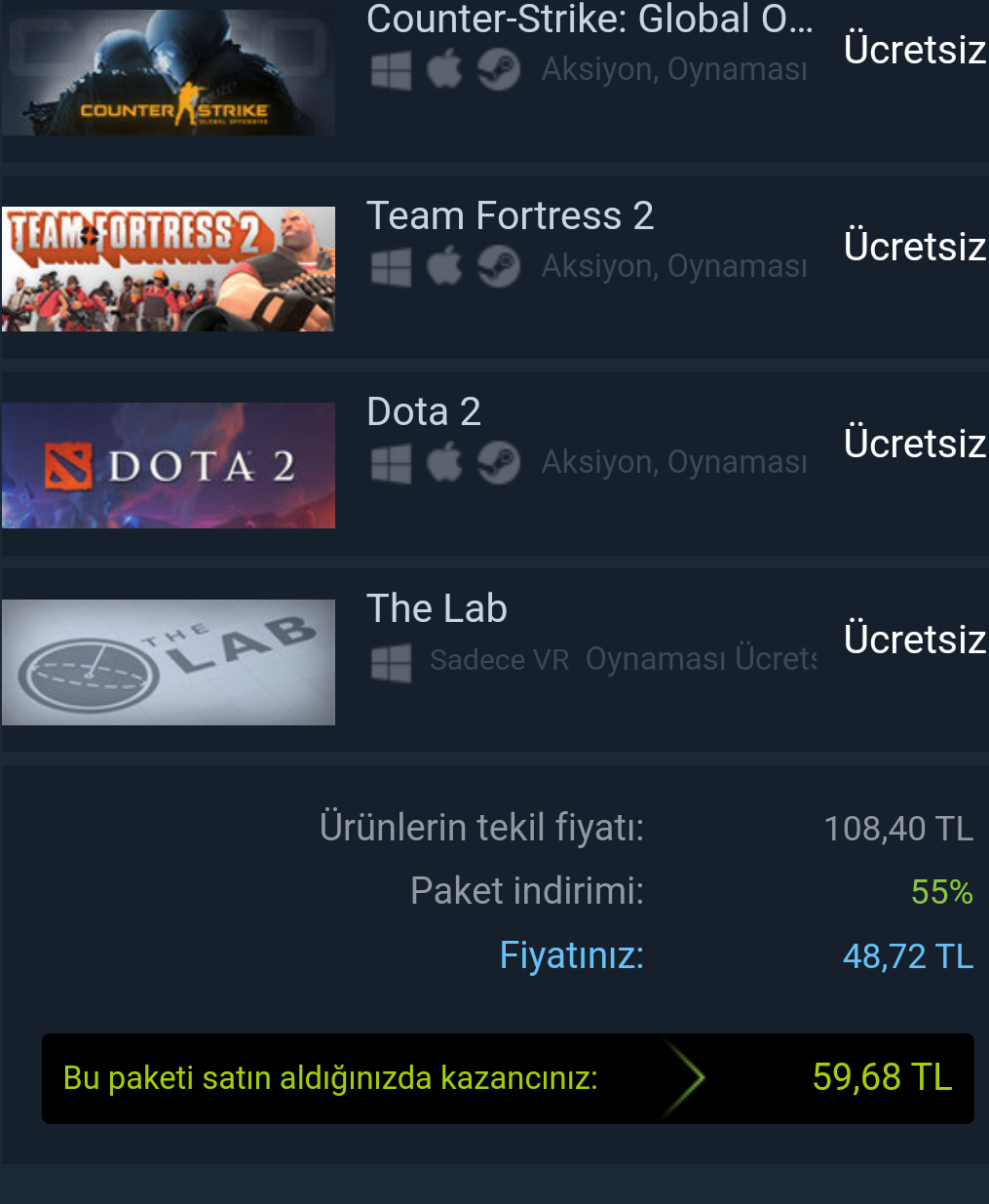 yapma yaBazı oyunlar sende olduğu için fiyattan düşüyor.