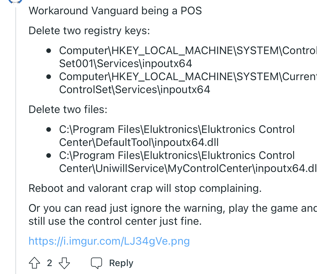 Yazan bu Vanguard, aşağıdaki dosyanın sisteminize yüklenmesini engelledi: "\ Device \ HarddiskVolume3 \ Windows \ System32 \ drivers \ inpout x64.sys 'Vanguard'ı devre dışı bırakmak için, lütfen Vanguard bildirim simgesine sağ tıklayın ve" Vanguard'dan Çık "ı seçin. NOT : Bu, sisteminizi güvenilmez bir duruma sokacaktır.Vanguard'ın işlevselliğine bağlı oyunları oynamak için yeniden başlatmanız gerekecektir.