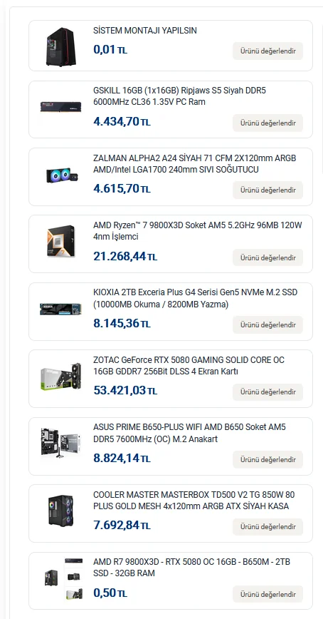 drakathx 80+ Platinum Katılım 25 Ağustos 2023 Mesajlar 11,053 Reaksiyon skoru 3,017 16 Ekim 2025 #2 BBLows yazmış: Merhabalar, Geçenlerde bir arkadaş atmıştı bu kasayı ve biraz configüre ettim. Sizce nasıl olmuş önerileriniz varmıdır (Ram 2 tane). 108.402 TL Alıntıyı görüntüle Devamı için tıklayın... kazık fırsat diyemeyiz
