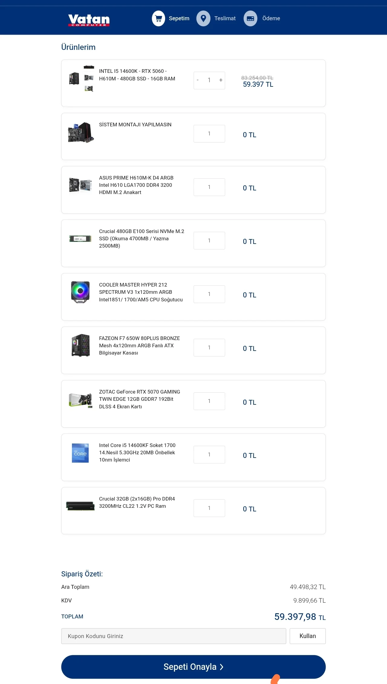 bana ucuz gelmedi açık söyleyeyim.Alıntıyı görüntüleINTEL I5 14600K - RTX 5060 - H610M - 480GB SSD - 16GB RAM fiyatı, teknik özellikleri, modelleri, en ucuz fiyatlarla Vatan Bilgisayar'da