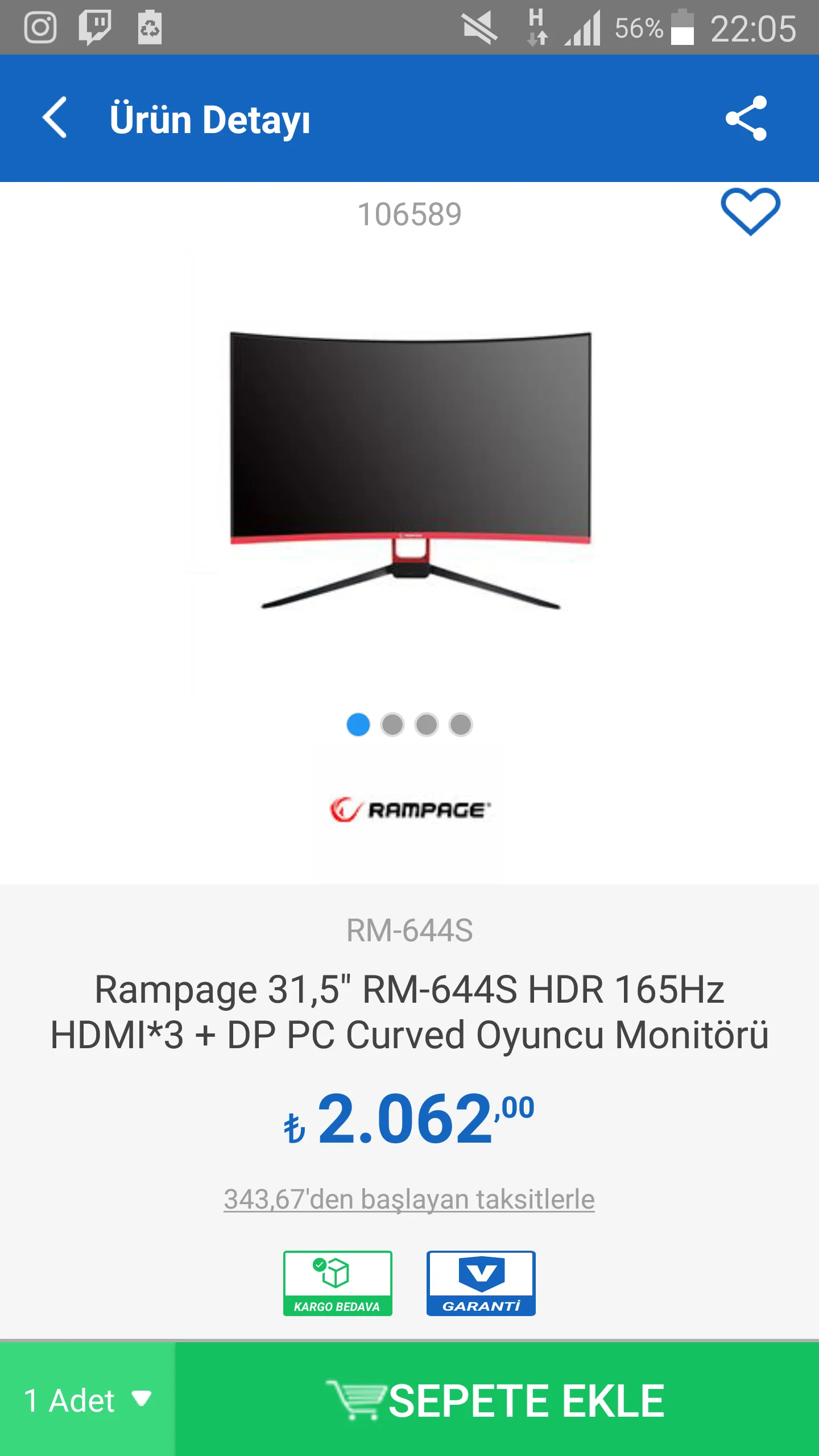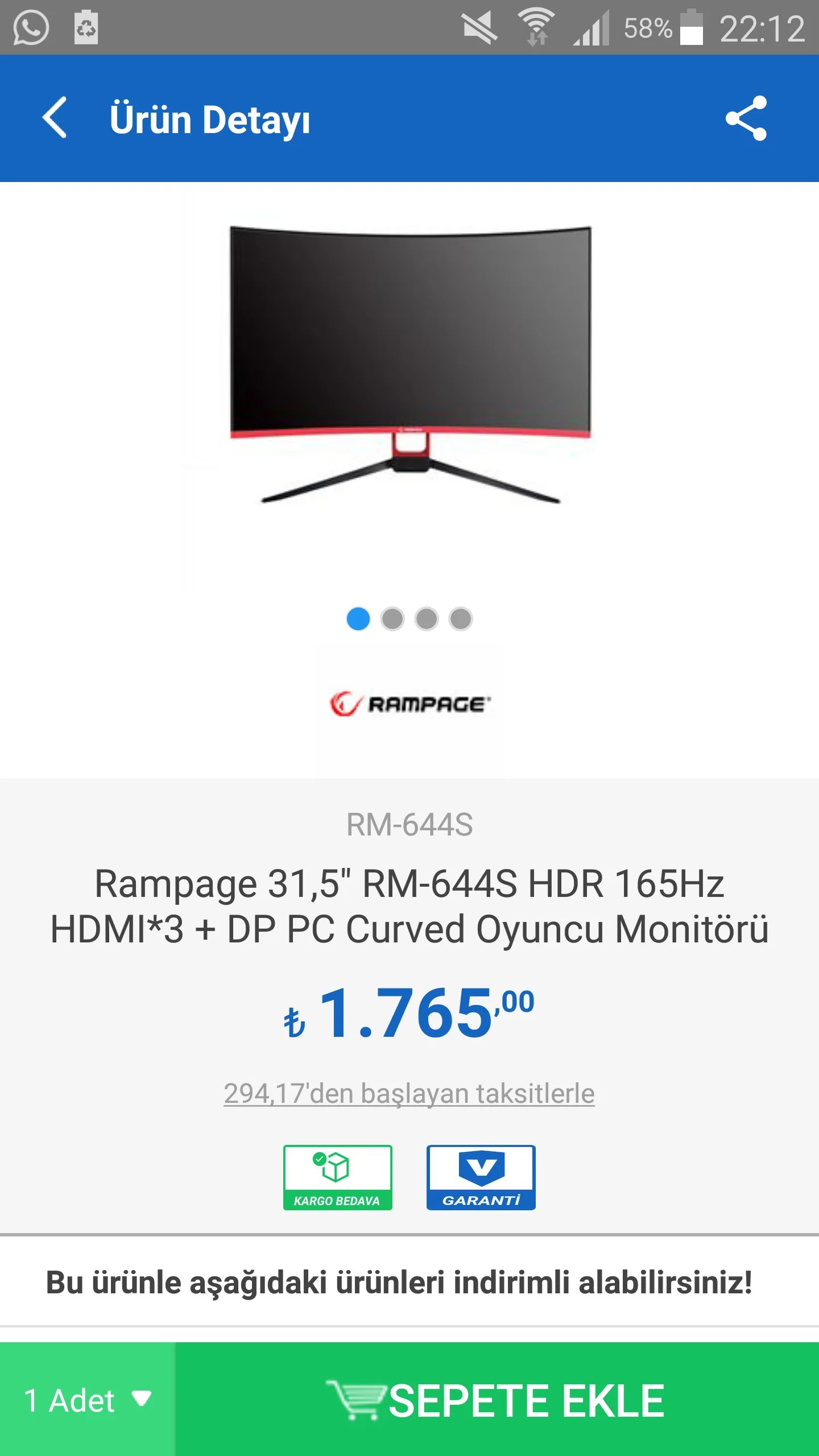 Büyük bir hevesle sepetime eklediğim Rampage in 31.5 inch 165 hz 1 ms Freesync monitörü Vatan bilgisayarda 1765 TL ye satılırken, 1 haziranda fiyatı 2060 tl ye yükseltildi.. Mağazalar açılacak diye elden almayı tercih edip beklemiştim, büyük bir hata yapmışım. Artık o fiyatlara çıkmışken başka marka monitör alırım diye düşünüyorum.. Var mı önerebileceğiniz 30 inch üstü 144 hz ve üstü 1 ms tepkime süresine sahip freesync desteği olan monitör ? Bütçe 2 bin TL civarı.. Teşekkürler