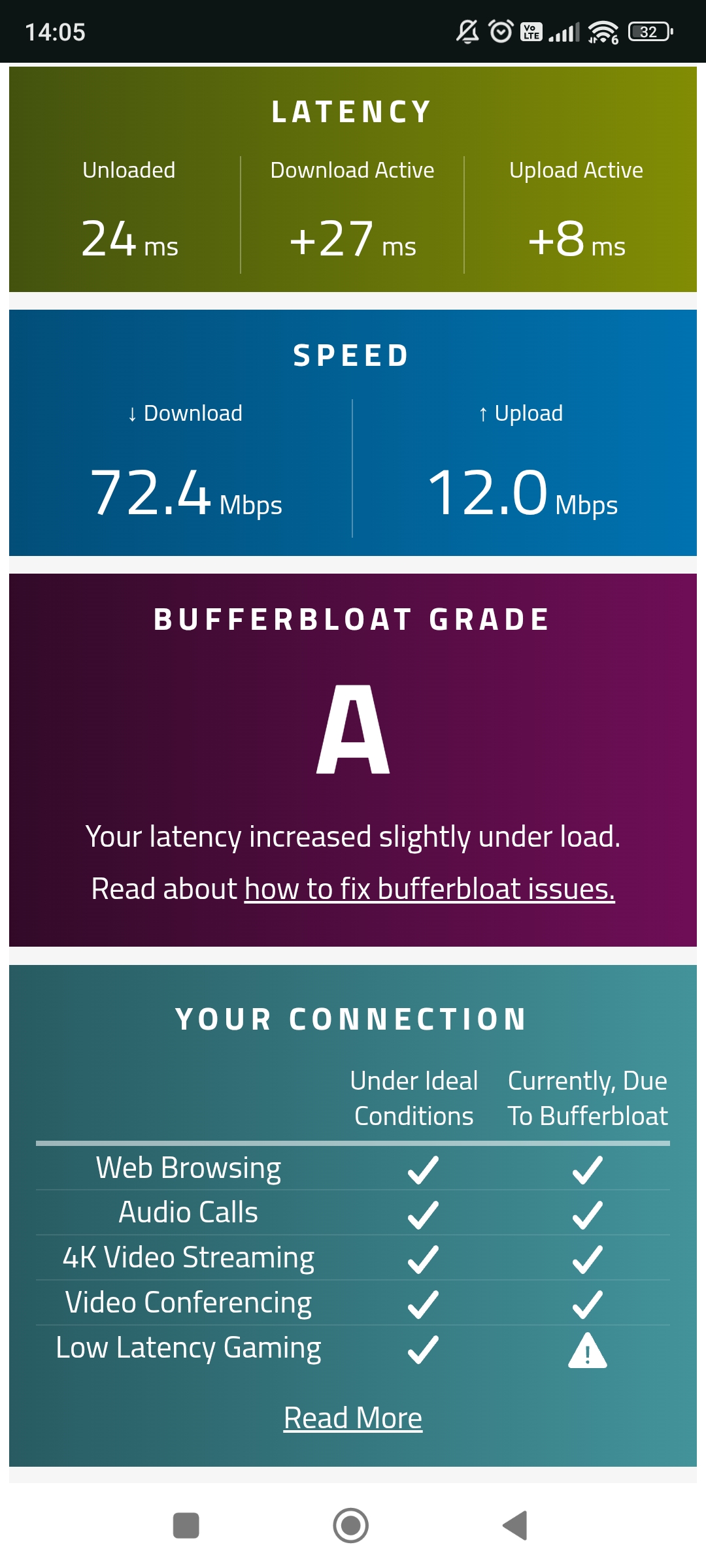 Bufferbloat testim: https://www.waveform.com/tools/bufferbloat?test-id=e7186625-c140-45ed-aa3a-1231d7e23ce6