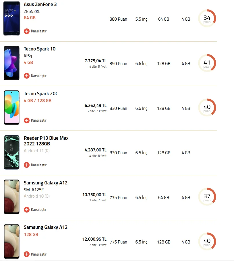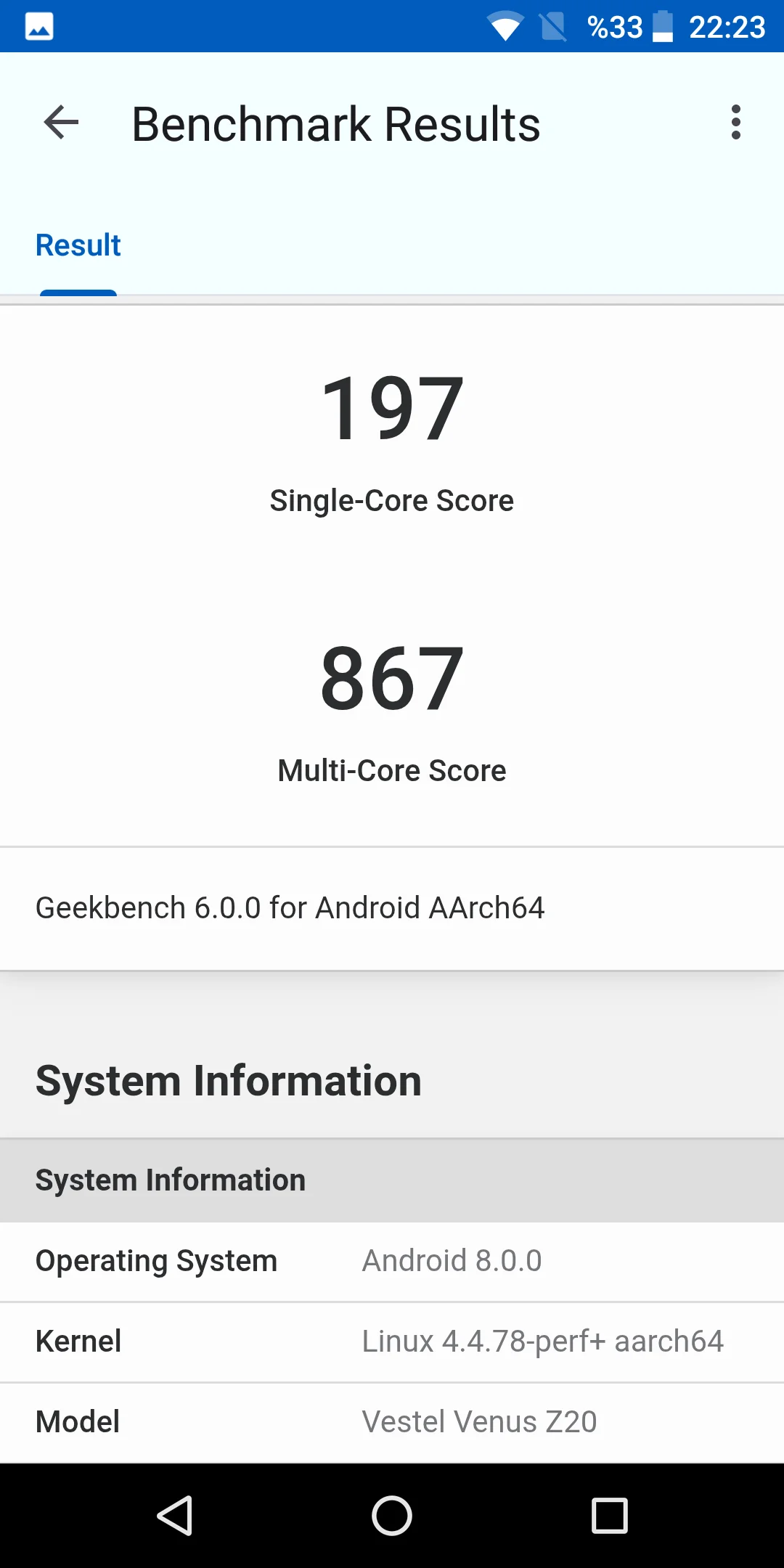 Elime geçenlerde geçen bu telefona ait geekbench değerleri aşağıdaki gibidir: